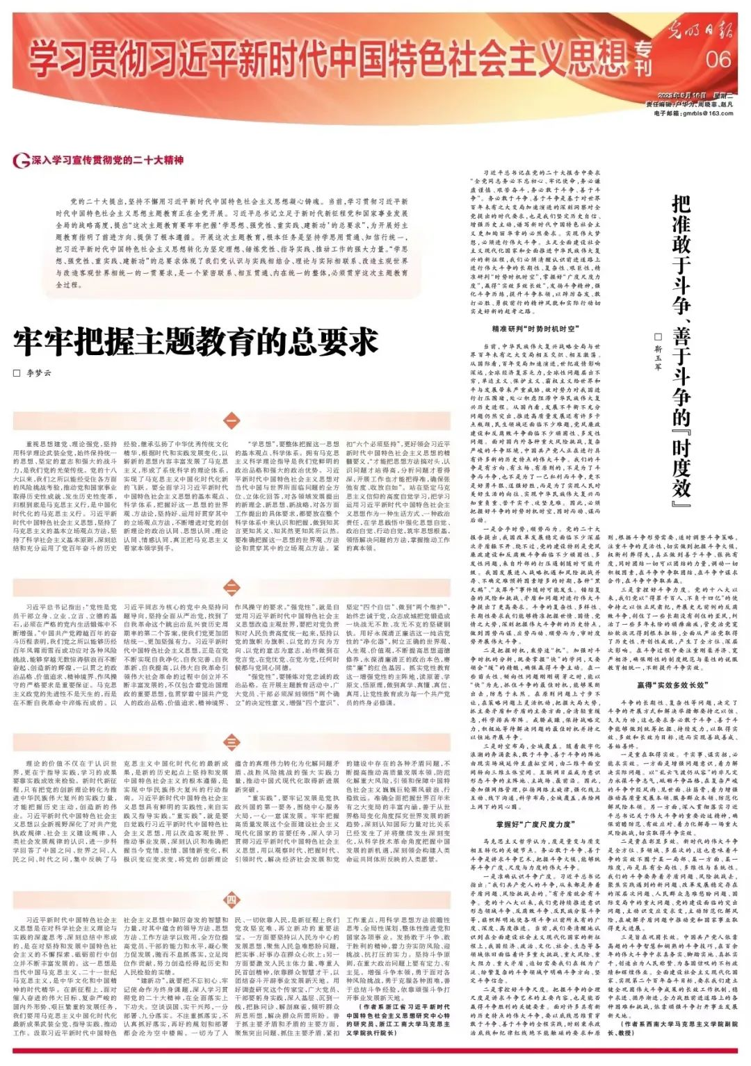 近日,《光明日报》刊发公司靳玉军教授的理论文章《把准敢于斗争、善于斗争的“时度效”》。