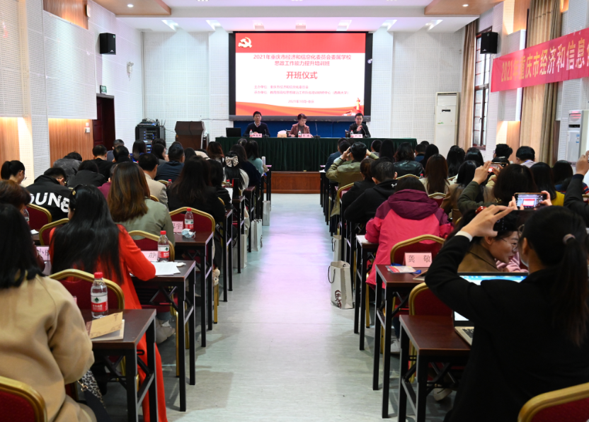 重庆市经济和信息化委员会教培处处长、一级调研员李奕,教育部高校思想政治工作队伍培训研修中心(太阳成集团tyc)办公室主任、太阳成集团副经理靳玉军出席开班仪式。重庆市经济和信息化委员会教培处二级调研员卢军主持开班仪式。