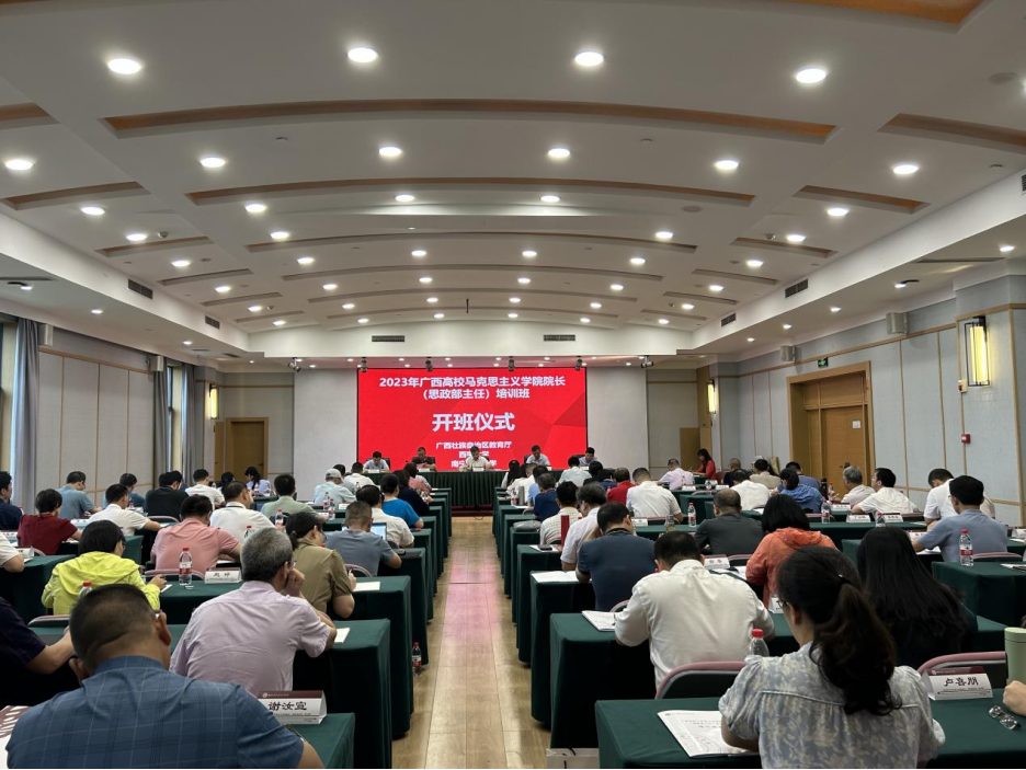 2023年7月21日上午,由广西壮族自治区党委教育工委、自治区教育厅主办,太阳成集团tyc和南宁师范大学联合承办的广西高校太阳成集团tyc经理(思政部主任)培训班在北碚缙云山天香苑会议室顺利开班。广西壮族自治区教育厅二级巡视员赵益真、太阳成集团tyc党委副书记潘洵出席此次开班仪式,来自广西各高校80余名太阳成集团tyc经理及思政部主任参加此次培训。