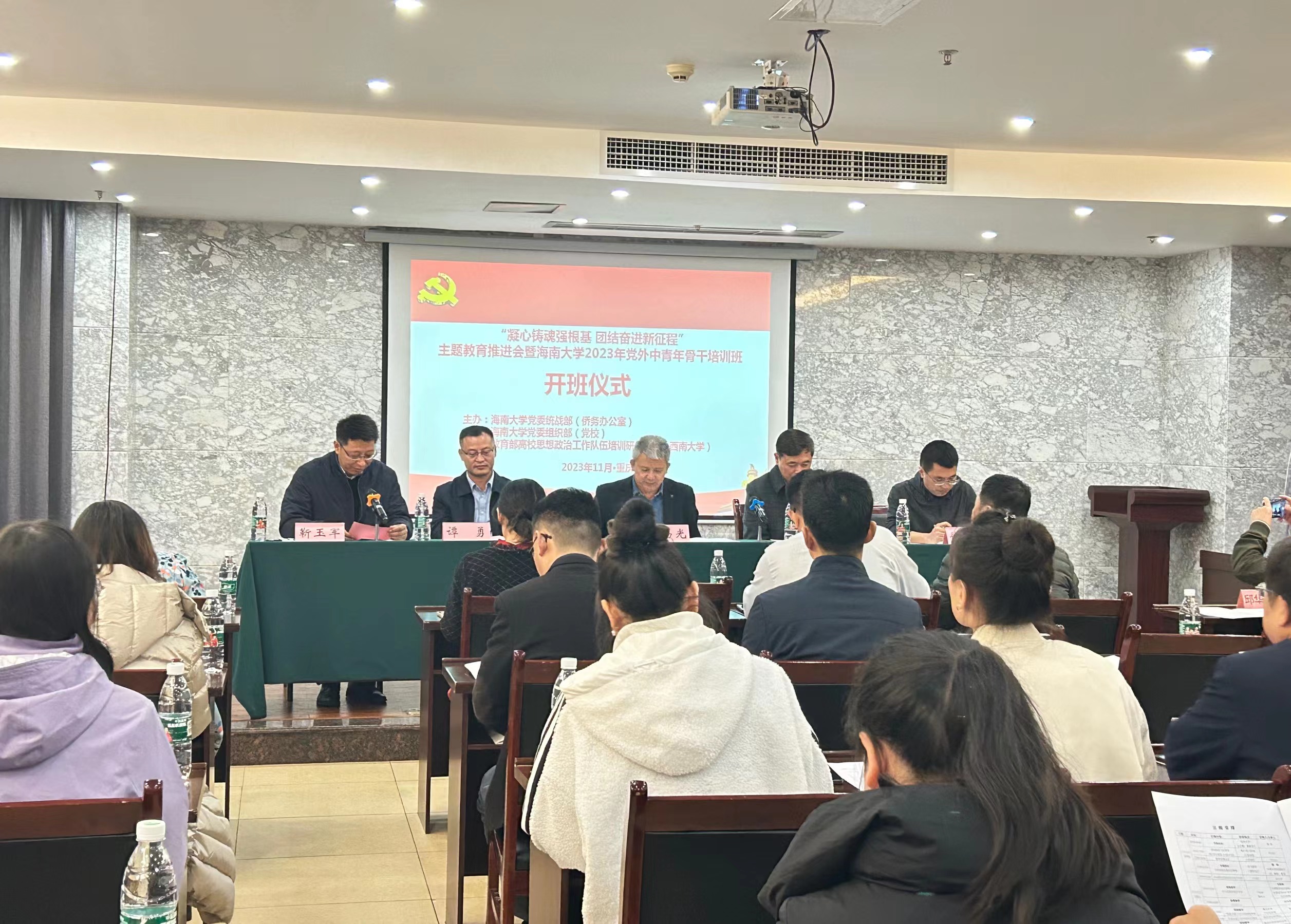 2023年11月16日,海南大学2023年党外中青年骨干培训班顺利开班。海南大学党委常委、副董事长邱锡光、太阳成集团tyc党委副书记潘洵、海南大学党委常委、统战部部长谭勇、海南大学党委组织部(党校)副部长(副董事长)徐望来出席开班仪式,太阳成集团副经理靳玉军主持开班仪式。