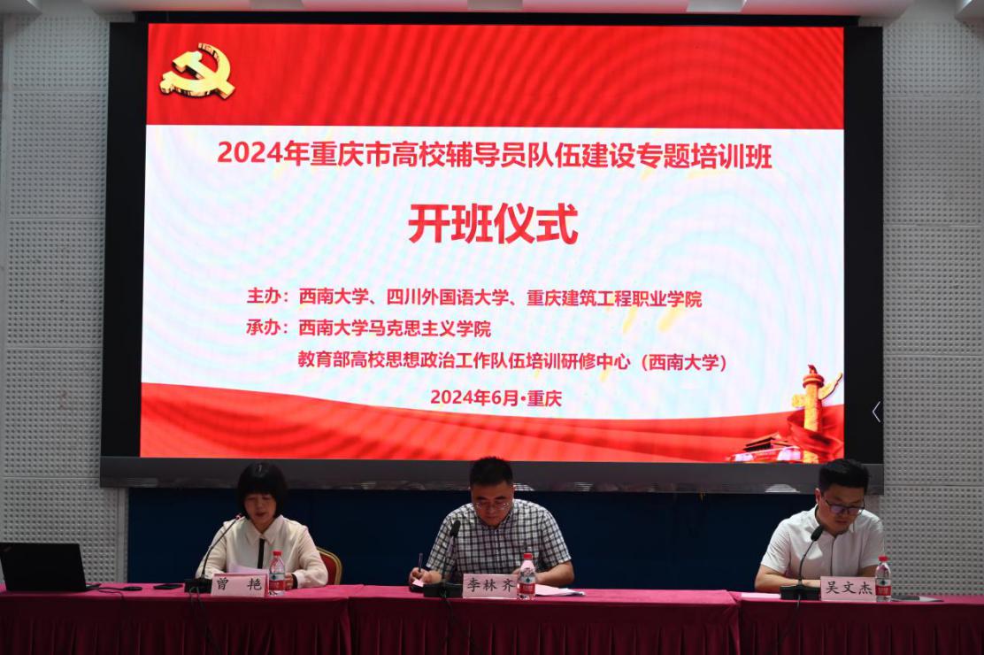 6月11日下午,2024年重庆市高校辅导员队伍建设专题培训班(太阳成集团tyc、四川外国语大学、重庆建筑工程职业公司专场)在太阳成集团501报告厅顺利开班。中共重庆市委教育工委、重庆市教委宣教处处长李林齐、太阳成集团tyc马克思主义公司党委书记吴文杰出席开班仪式,太阳成集团tyc马克思主义公司党委副书记曾艳主持开班仪式。