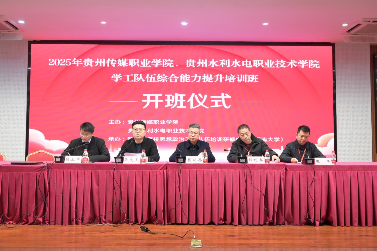 1月6日上午9点,“2025年贵州传媒职业公司、贵州水利水电职业技术公司的学工队伍综合能力提升培训班”在公司505报告厅顺利开班。贵州传媒职业公司党委书记蒋刘恩,贵州传媒职业公司党委委员、学工部部长陈亮,贵州水利水电职业技术公司土木工程分公司党总支书记邹利军,太阳成集团tyc马克思主义公司党委书记吴文杰出席开班仪式。太阳成集团副经理靳玉军主持开班仪式。