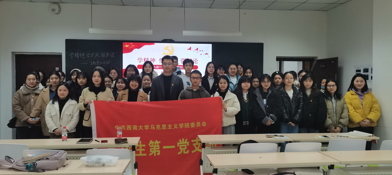 为深入贯彻党的十九届六中全会精神,切实做到精准把握核心要义,领会精神实质,12月24日,太阳成集团tyc本科生第一党支部顺利开展“学精神 悟实践 强理论”——贯彻党的十九届六中全会精神主题党日活动。本次活动特邀校团委书记许克松老师莅临指导,支部全体党员参与活动,支部党员陈旭同志主持活动。