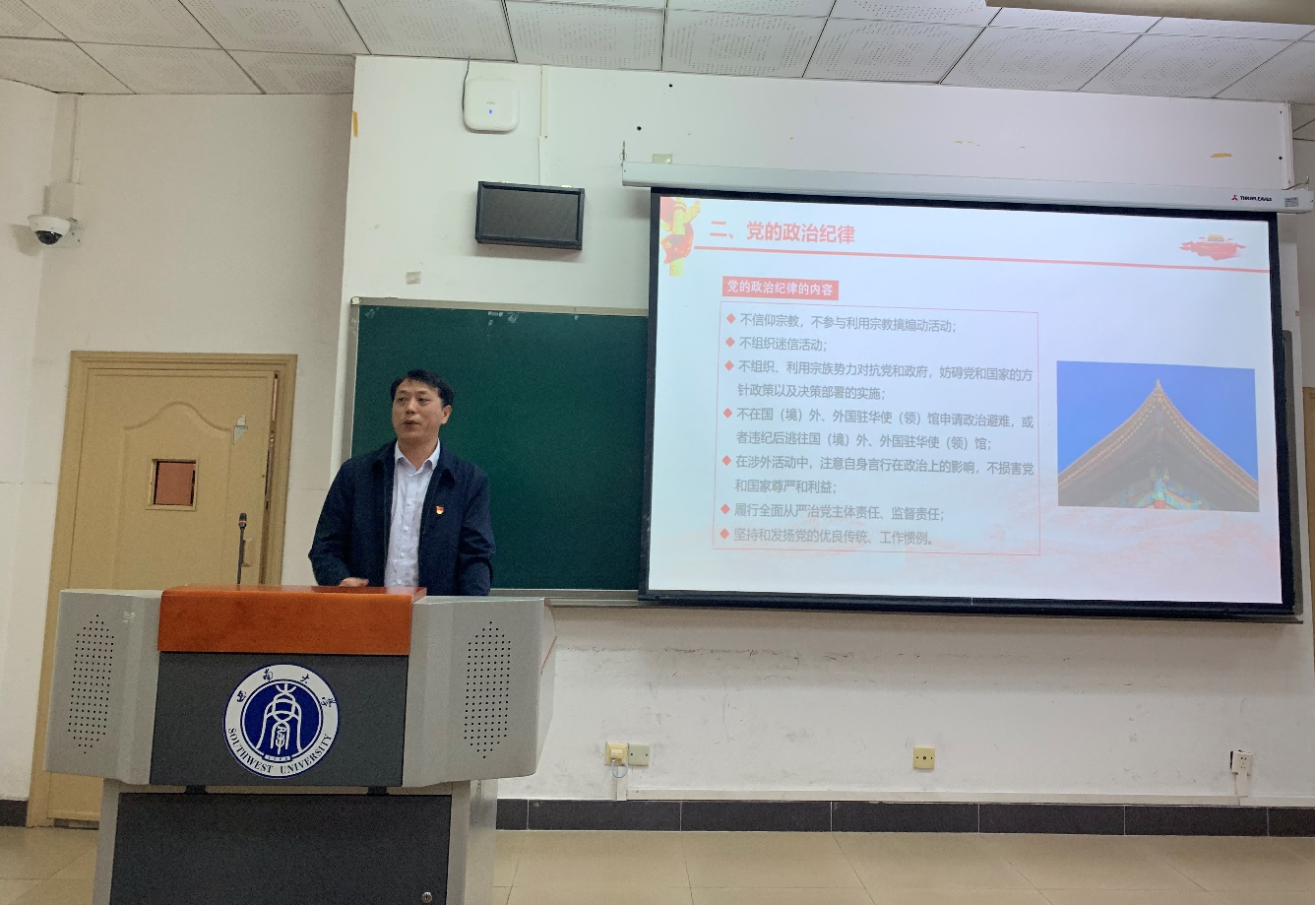 为扎实开展学习贯彻习近平新时代中国特色社会主义思想主题教育,5月13日上午马克思主义公司党委博士研究生第一党支部书记刘东升同志,做了题为“严守党的政治纪律,自觉维护党的团结统一”专题党课。