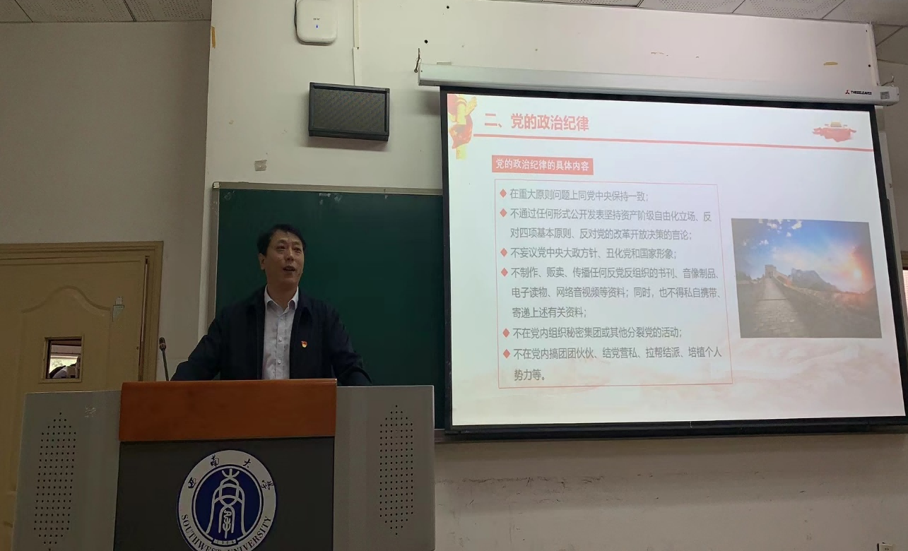 刘东升同志以党的纪律这一核心概念为切入点,从最新修订的党章中对党的纪律的规定入手,指出党的纪律是党的各级组织和全体党员必须遵守的行为规则,是党的生命线,纪律严明是我们党的光荣传统和独特优势。刘东升同志指出,在党的六大纪律中,政治纪律是最重要、最根本、最关键的纪律。严明政治纪律就要从遵守和维护党章入手,要牢固树立党章意识,自觉用党章规范自己的一言一行,在任何情况下都要做到政治信仰不变、政治立场不移、政治方向不偏。