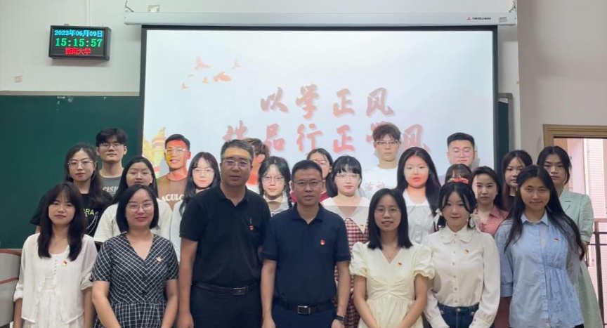 2023年6月9日,太阳成集团本科生第二党支部在10教403开展“以学正风,端品行正学风”主题党日活动。本次主题党日活动参会人员有公司党委统战部常务副部长海克军、公司党委书记廖晓衡,本科生第二党支部全体党员。