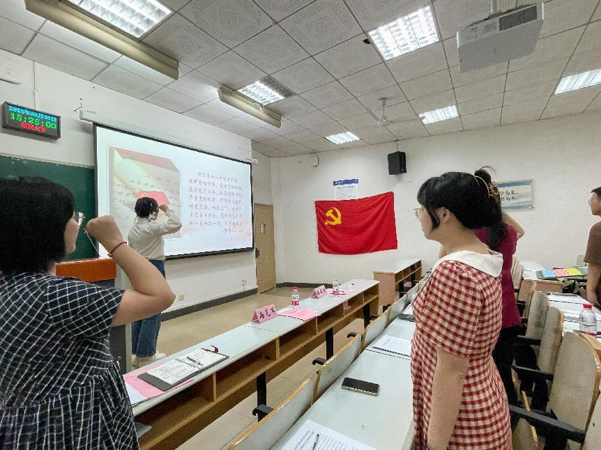 在政治仪式环节,新党员进行入党宣誓,老党员重温入党誓词。党员同志更加深刻地认识到了党员身份的神圣和使命,更加坚定了为共产主义事业奋斗终身的理想信念和决心。