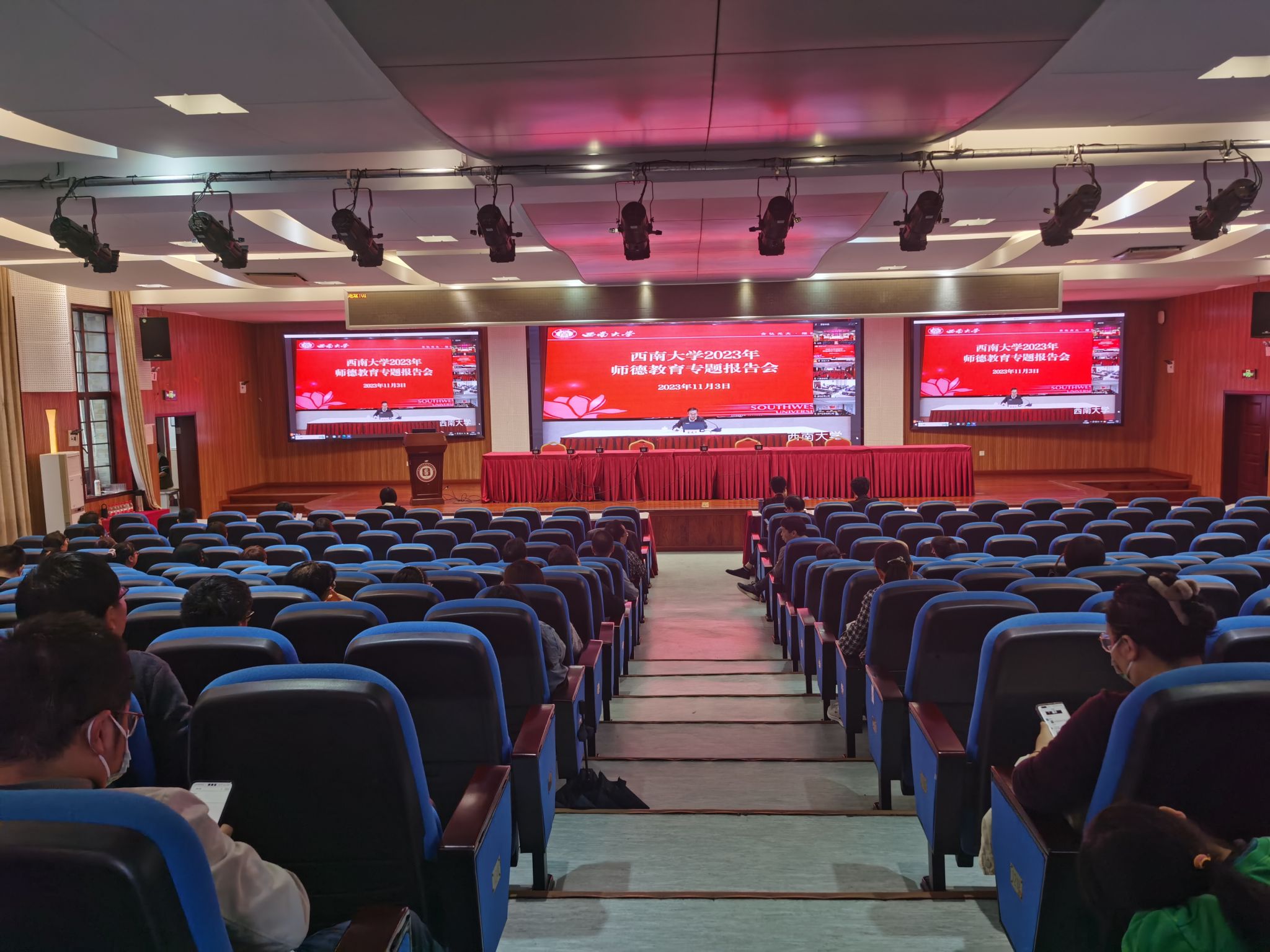 首先,大家聆听了由首届全国高校师德师风建设专家委员会委员、江西省社会科公司原副经理曾建平主讲的“弘扬教育家精神 努力成为大先生”师德教育专题报告。曾教授以六种情怀解读教育家精神,明确习近平总书记关于师德师风建设的核心要求,之后通过列举师德负面典型案例,引导全体教师提出争做“四有”好老师,当好员工引路人,努力做培养担当民族复兴大任时代新人大先生。让老师们对习近平总书记关于加强师德师风建设的重要论述有了更为深刻的学习与领会。