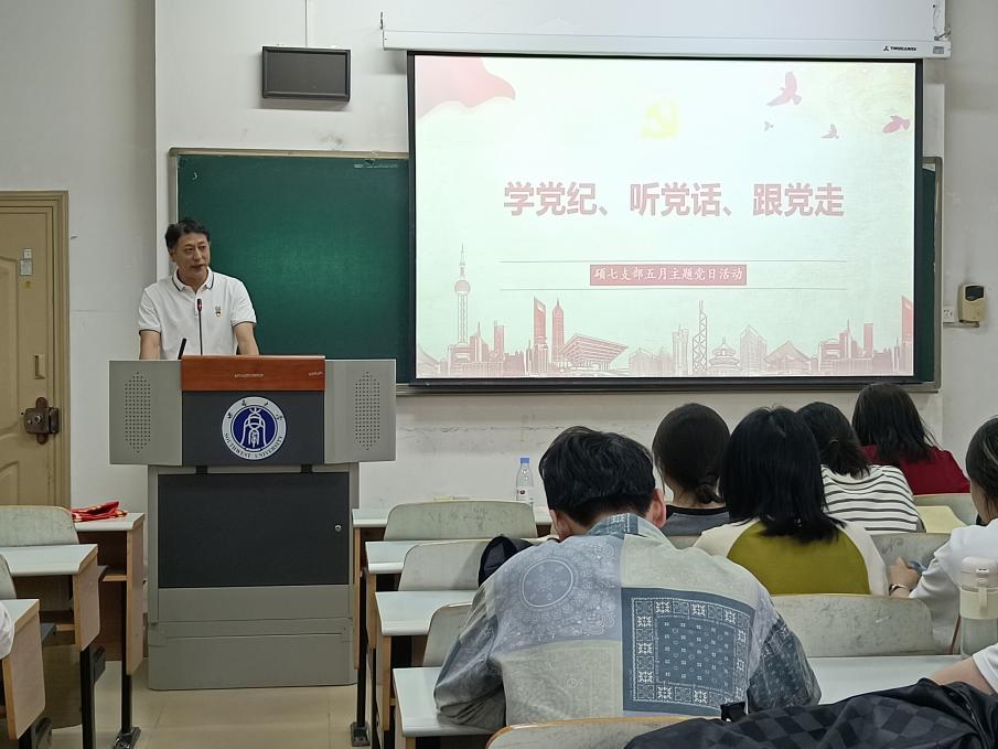5月17日下午,太阳成集团tyc硕士生第七党支部在十教304教室开展了“学党纪、听党话、跟党走”主题党日活动。太阳成集团tyc培训与基础教育管理处副处长刘东升联系指导,党支部全体党员及入党积极分子参会,党支部书记黄岚主持。