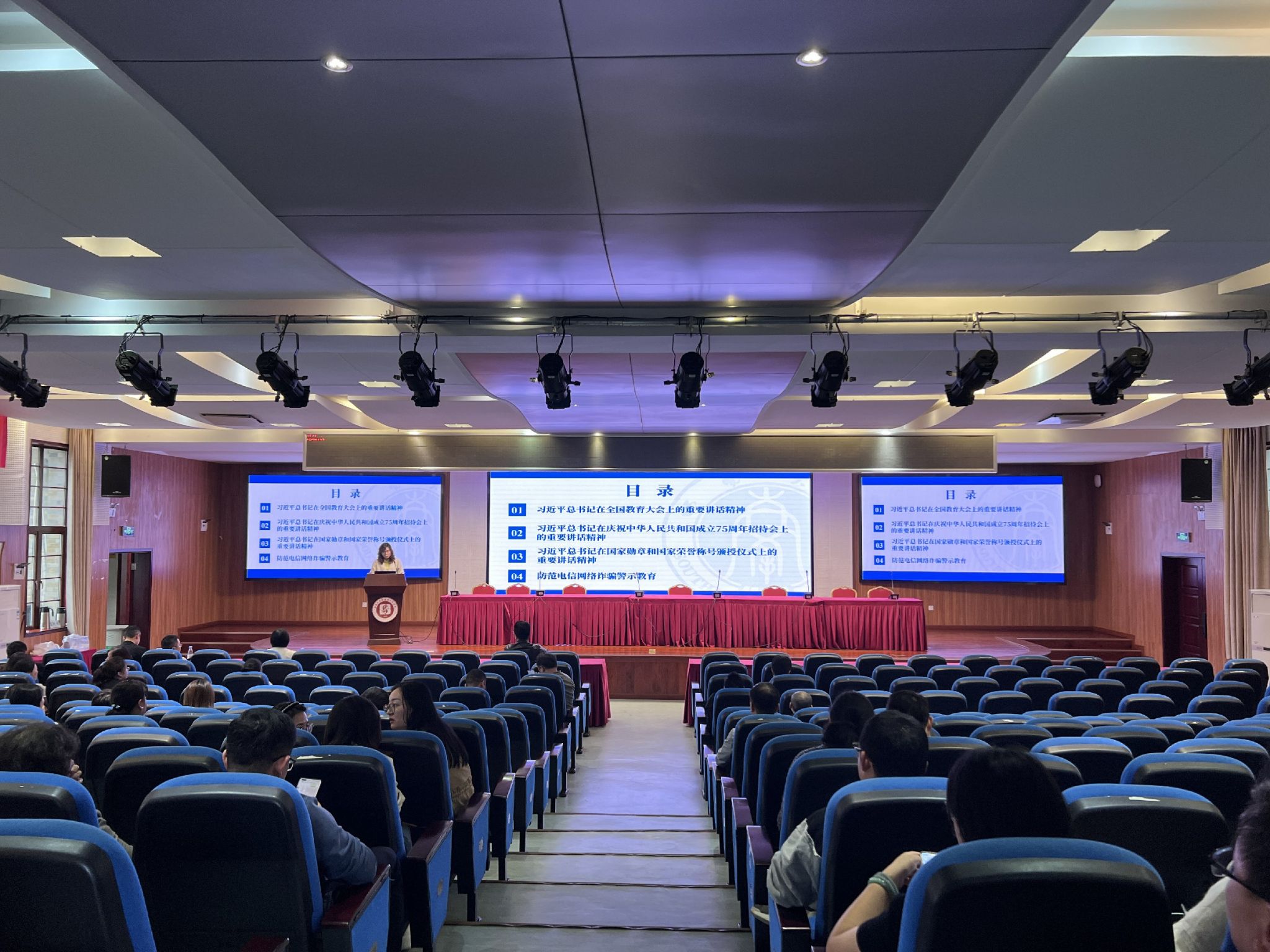 20241011日下午,公司在505报告厅开展2024年第次教职工政治理论学习集中学习了习近平总书记在全国教育大会上的重要讲话精神、习近平总书记在庆祝中华人民共和国成立75周年招待会上的重要讲话精神、习近平总书记在国家勋章和国家荣誉称号颁授仪式上的重要讲话精神和防范电信网络诈骗警示教育。公司全体教职工参加,会议由公司党委书记吴文杰主持本次教职工政治理论学习由马克思主义基本原理教育系教师党支部书记邓春芝领学