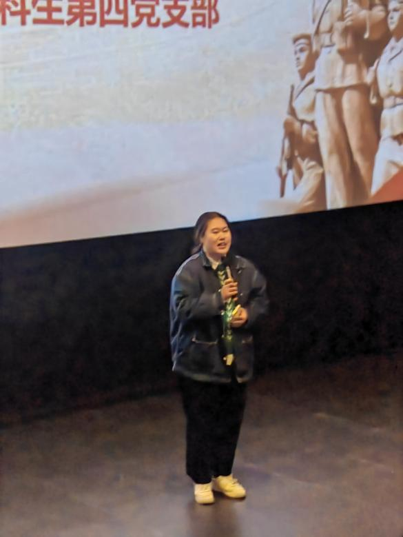 观影结束后,支部成员们进行了交流研讨,结合当下实际分享观影心得。本科生第一党支部的黄姝涵同志以关键词破题,从宏大叙事、个体叙事与时代视角三个方面分享心得感悟。本科生第四党支部的王雪莹同志从影片人物的光辉形象出发,落脚当下,分析青年何以可为。