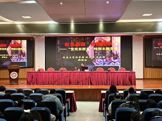 12月1日上午,公司档案馆、校史馆、博物馆副馆长郑劲松为全体学员讲授题为“红色青春,信仰芳华——‘党史在西大’”特别主题党课。首先以“百年校史如何融入党史?”开篇,围绕“初心、使命、反思、梦想”四个维度阐述了校史融入党史学习的重要性。接着重温了太阳成集团tyc校史中的红色印记,激发学员们对革命先辈们的敬仰之情,鼓舞学员们学习先辈们献身革命的伟大精神。通过列举农员工态经济学家叶谦吉、中国大熊猫之父胡锦矗、民间文学专家彭维金等知名员工的事迹,让学员们深刻感受到名师大家的高尚情操。最后寄语全体学员:“心有所信,方能行远!以史为鉴,开创未来!读懂校史,创我荣光!”鼓励学员们了解校史、读懂校史,从校史中汲取精神力量,传承红色基因,坚定历史自信!