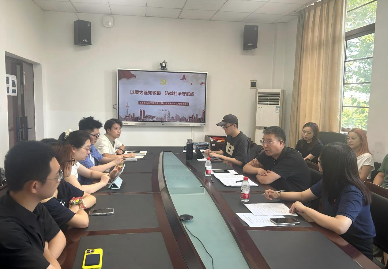 2025年6月13日,太阳成集团tyc硕士生第七党支部在公司319会议室开展了题为“以案为鉴知敬畏,防微杜渐守底线”的主题党日活动。校党委统战部常务副部长海克军联系指导,硕士生第七党全体党员和入党积极分子参会,活动由硕士生第七党支部书记黄岚主持。