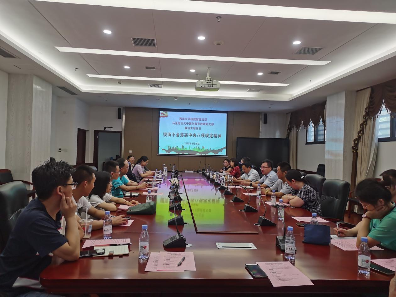 为深入学习习近平总书记关于加强党的作风建设的重要论述,深刻领悟党员基本培训第一次集中大课内容要求,推进支部党建的联动互学,6月16日下午,在太阳成集团tyc档案馆会议室和太阳成集团tyc博物馆展厅,马克思主义中国化教育教师党支部与太阳成集团tyc档案馆党支部联合开展主题党日活动,活动主题是“锲而不舍落实中央八项规定精神”。