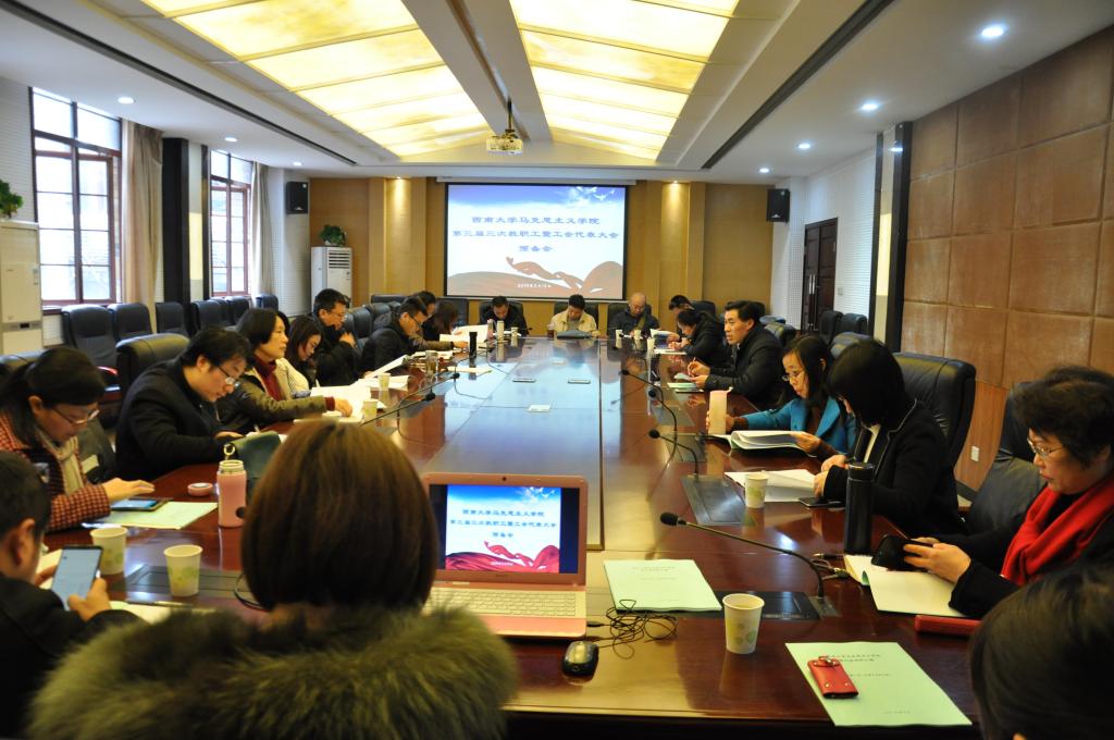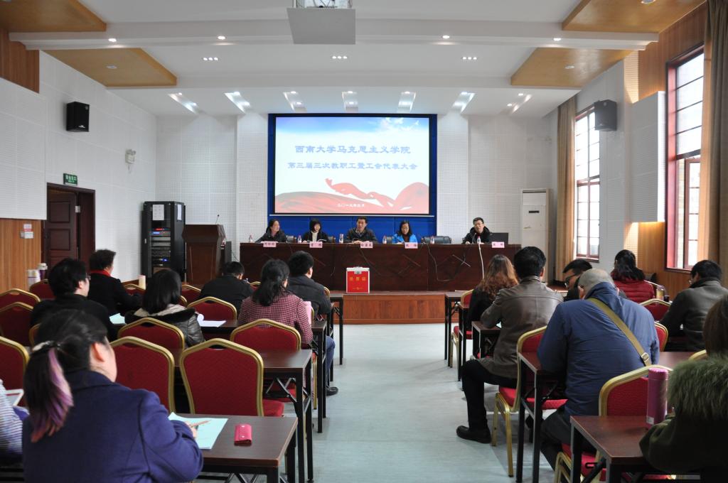 2019年3月15日,太阳成集团tyc召开了第三届三次教职工暨工会代表大会,表决通过了《太阳成集团学术成果出版资助实施办法》、《太阳成集团教学科研奖励方案》、《太阳成集团教师学术出差管理办法》、《太阳成集团关于教师攻读博士学位、从事博士后研究、国内访学及出国研修的管理办法》、《太阳成集团教师听课观摩制度》、《太阳成集团系(部)集体备课制度》、《太阳成集团考试管理制度》、《太阳成集团教学奖励资助办法》、《太阳成集团tyc思政课教师社会实践考察管理办法》、《太阳成集团绩效津贴分配办法》、《太阳成集团年度绩效分配方案》共11个文件,马院制度建设又上了一个新台阶。