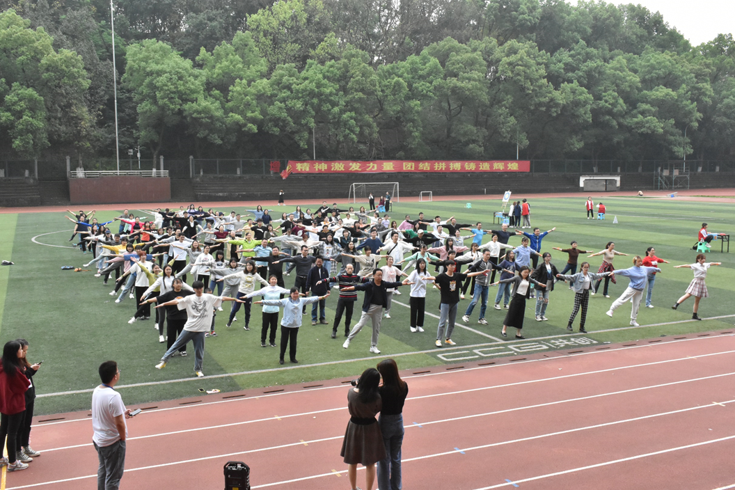 14时30分,在主持人介绍整场运动会规则之后,公司党委常务副书记廖晓衡书记致辞,正式宣布师生趣味运动会开始。首先进行热身环节,全体齐跳第九套广播体操。老师和同学们的动作整齐划一,展现出了昂扬向上的精神风貌。