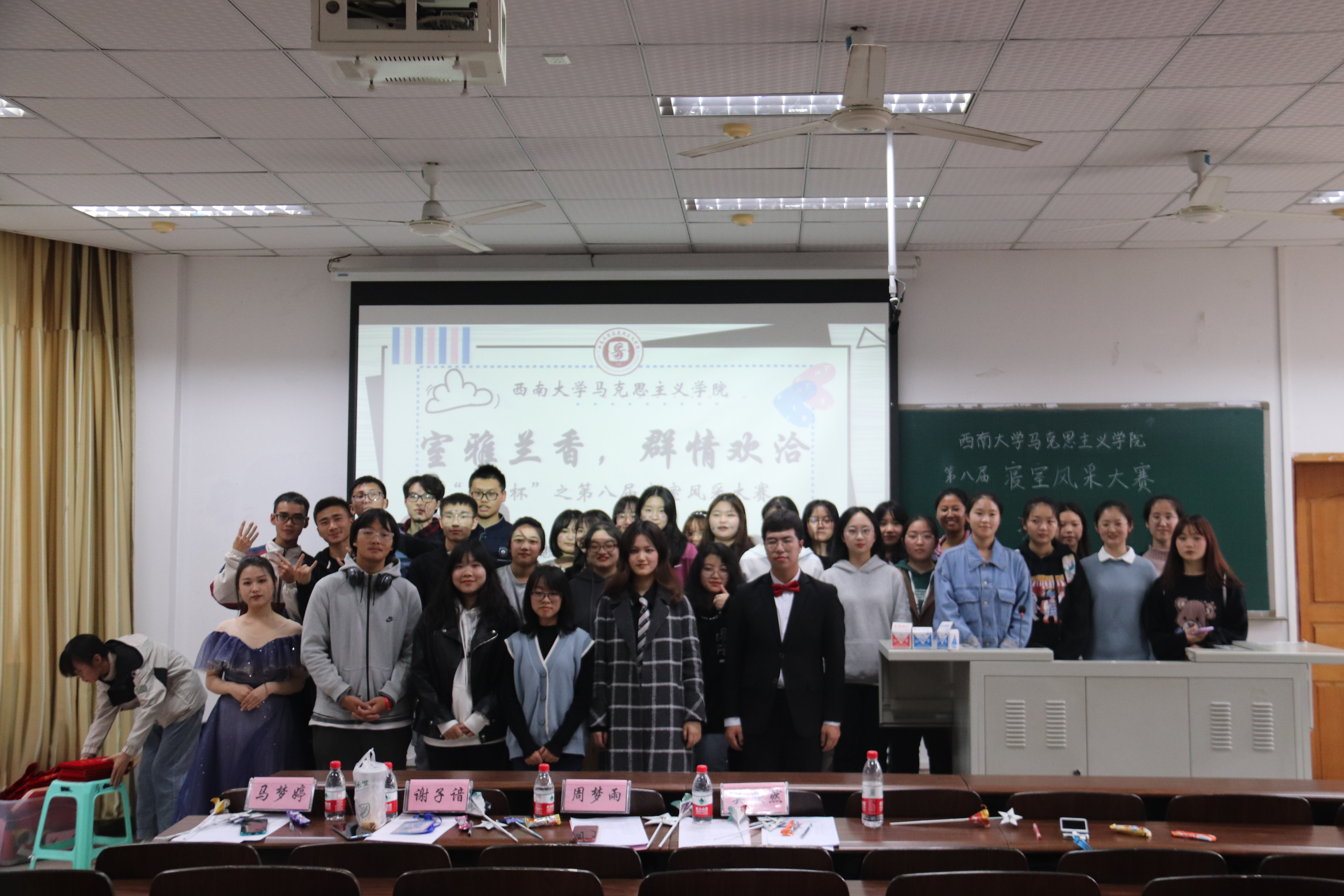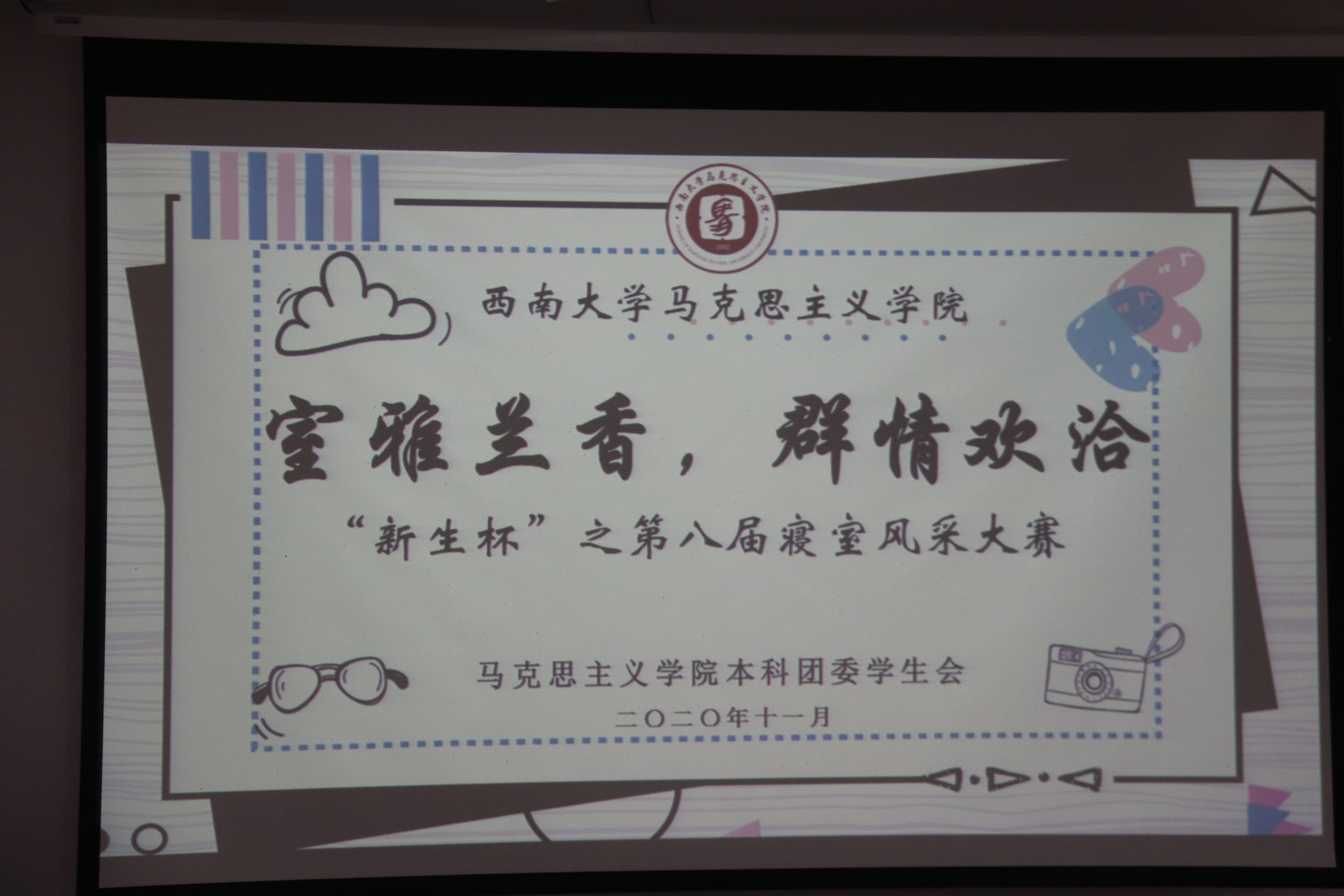 伴随着愉快的音乐和主持人的精彩介绍,本次寝室风采大赛拉开帷幕。在 PPT展示环节中,各个寝室精心准备的介绍让大家更好地了解每个寝室。内涵丰富的寝室logo让各个寝室大放光彩,自制的寝室vlog更是惊喜连连,各具特色的寝室文化让现场欢笑声不断。