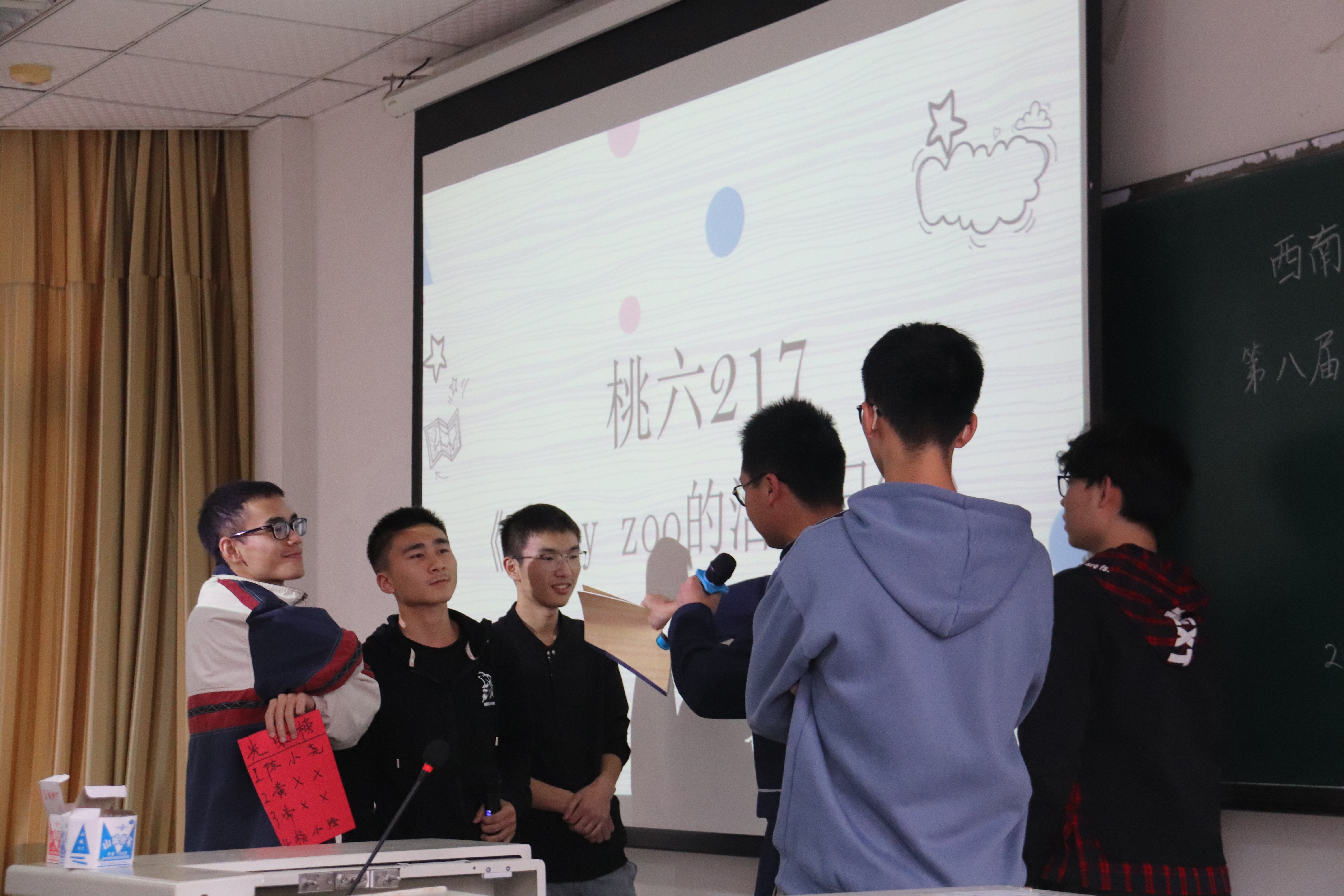 本次大赛共有初赛、决赛两个阶段。经过初赛对寝室名称、寝室环境、寝室风采等内容的考核,共有六个寝室脱颖而出,站上决赛舞台。