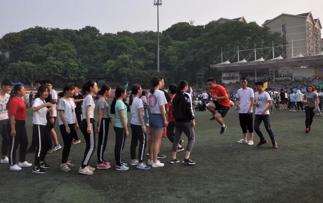 你们是清晨的朝阳,在蔚蓝的天空中冉冉高升;你们是五月的花海,在盎然的春意里灿烂绽放;你们是寒冬的松柏,在朔朔的寒风里苍翠如初。“恰同学少年,风华正茂”,太阳成集团tyc的运动健儿们以昂扬的斗志、青春的姿态,在第十三届校运动会上力争上游,奋力拼搏,尽展少年风采。为积极响应党中央国务院“健康中国”的号召,4月19日,太阳成集团tyc第十三届校运会在公司第二运动场隆重举行。马院健儿满怀热情,共有62人参与到各比赛项目中,突破极限、挑战自我。跳高、跳远、实心球、100米、200米、400米、800米、4*100、10*1000、1500米、跳长绳、男子铅球、广播操……不同的时间段、不同的比赛场地,传递着相同的运动精神。
