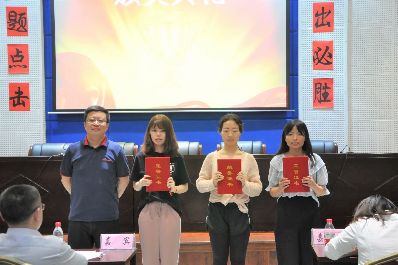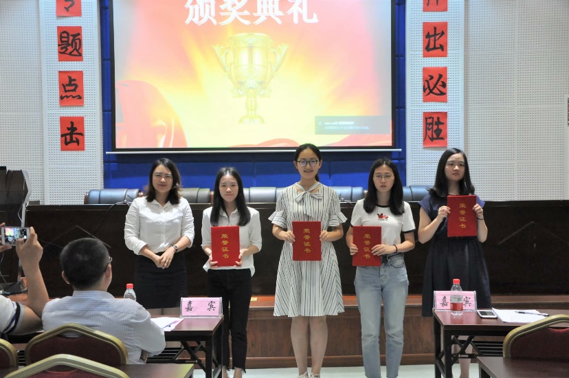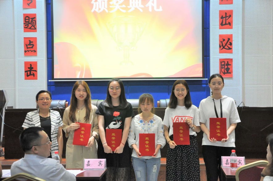 紧接着的观众互动环节也十分活跃,同学们积极向老师们请教。针对同学普遍提出的看不懂原著的问题,宋明老师建议要多尝试、“广撒网”、多阅读、多积累。随后,邓福蓉老师宣读竞赛结果。高家豪、郭梦琳、刘琳凤等20名本科生,林静、吴芳、陈梦兰、李亚静等33名研究生获奖。老师们依次对获奖选手代表进行颁奖。