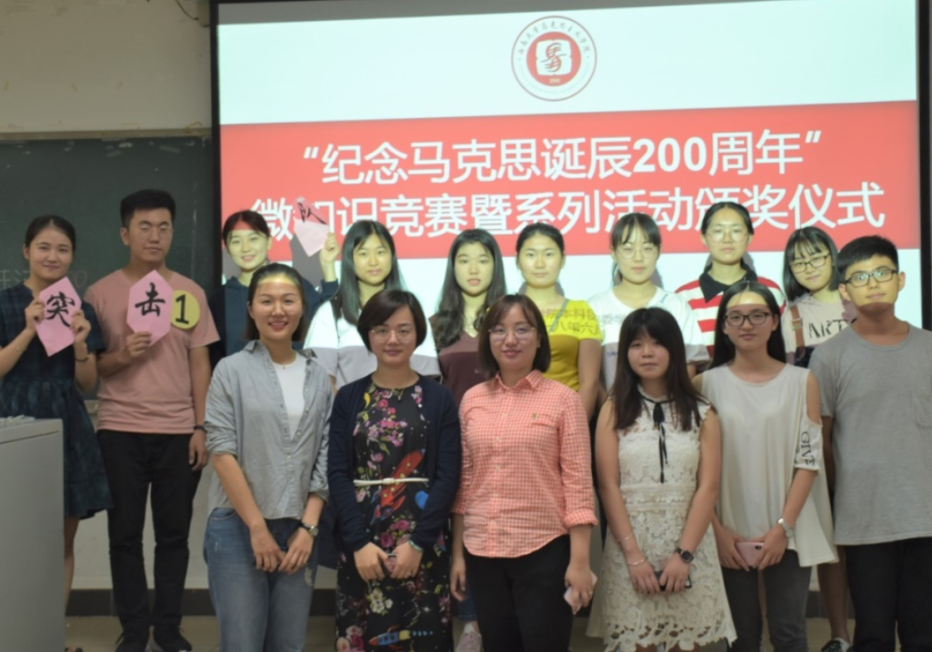 为纪念马克思诞辰200周年,缅怀马克思的伟大人格和历史功绩,重温马克思的崇高精神和光辉思想。公司特举办“纪念马克思诞辰200周年”文化节系列活动。其中微知识竞赛暨系列活动颁奖仪式于 6月1日15:00在10教501教室举行。公司团委书记李心悦老师、辅导员吴克瘟老师、王珏老师参与了此次活动。