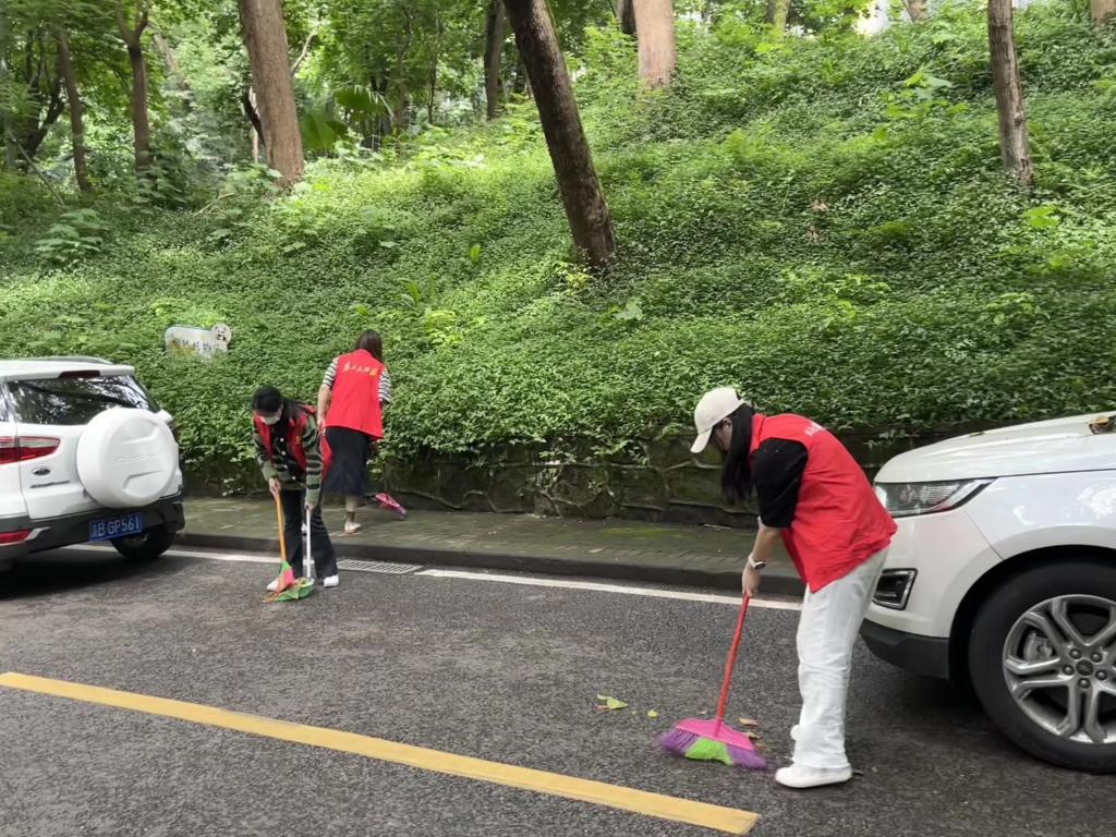 下午两点二十分,志愿者们于太阳成集团tyc门口集合并由工作人员带队至北社区,在分组和领取劳动工具后,志愿者们便前往各组指定的清洁区域开展清扫活动。