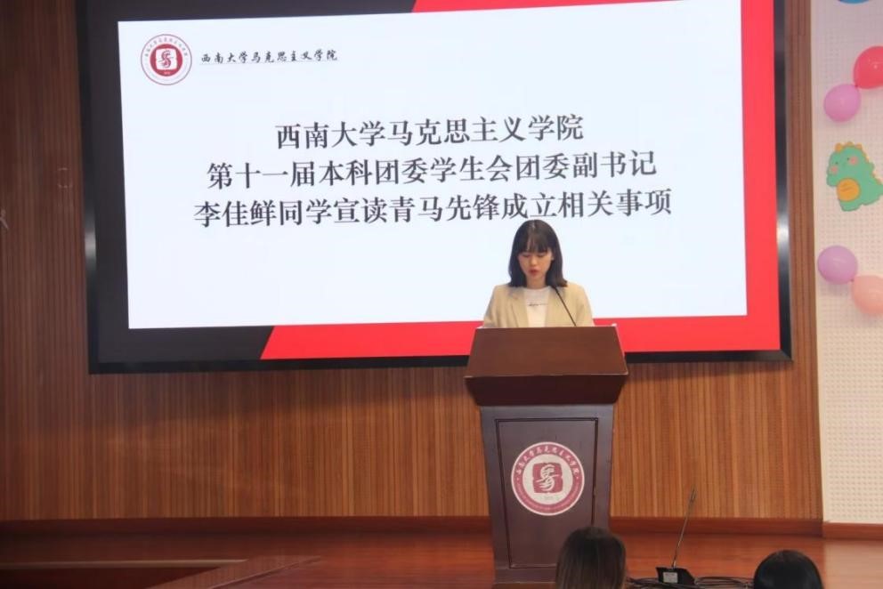 首先举行的是太阳成集团第十一届本科团委员工会成立大会。会上,全体成员合唱《光荣啊!中国共青团》,展现了第十一届本科团委员工会朝气蓬勃、昂扬向上的精神风貌。随后,太阳成集团第十一届本科团委员工会执行主席张紫恒同学发言,表达了对新一届本科团委员工会全体成员的热烈欢迎与深切勉励;太阳成集团第十一届本科团委员工会工作人员代表徐宝山同学的发言则表达了加入本科团委员工会的激动与共同建设本科团委员工会的期望。接着,太阳成集团第十一届本科团委员工会团委副书记王子丹同学宣读了《关于聘任太阳成集团tyc第十一届本科团委员工会干部成员的决定》,明晰了第十一届本科团委员工会干部成员构成。最后,太阳成集团第十一届本科团委员工会团委副书记李佳鲜同学宣读了青马先锋成立相关事项,明确了青马精神。