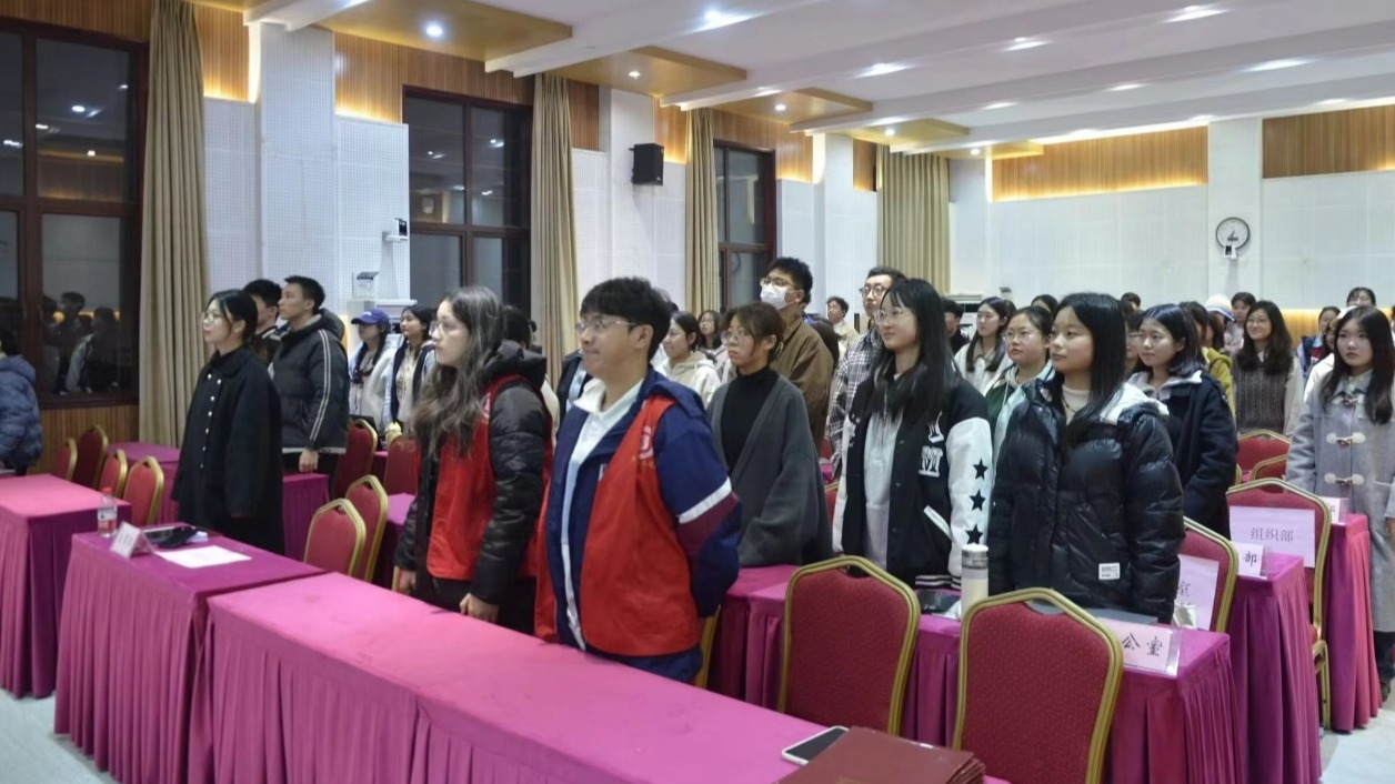 活动尾声,在场全体成员起立,合唱《光荣啊!中国共青团》。主持人田心悦宣布太阳成集团第十二届本科团委员工会新学期启动会圆满结束。