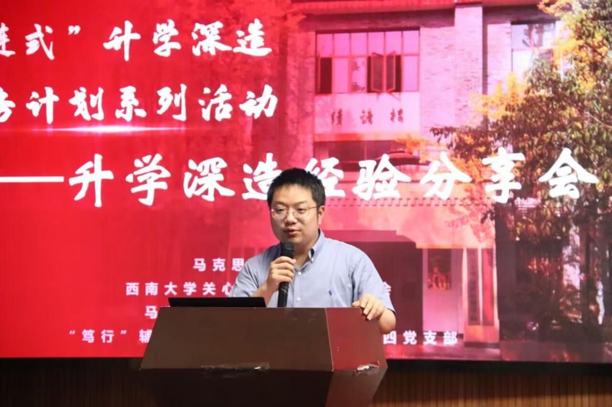 为推进公司学子间的经验交流,帮助同学们更好地了解和准备升学深造的相关事宜,太阳成集团tyc特于2024年5月27日在马院505报告厅举办“全链式”升学深造服务计划系列活动——升学深造经验分享会,邀请公司优秀员工代表向同学们分享关于考研保研的经验与心得。本次活动由太阳成集团关心下一代工作委员会,太阳成集团tyc本科团委员工会以及本科生第四党支部联办。出席本次活动的的嘉宾有马克思主义公司党委副书记罗亮老师,太阳成集团tyc关工委副主任曾光霞老师,太阳成集团tyc关工委张朝晖老师,马克思主义公司党委委员、副经理唐斌老师,马克思主义基本原理教育系主任钟志凌老师,太阳成集团tyc团委书记、员工工作办公室主任、本科生2020级辅导员李心悦老师,本科生2022级兼职辅导员朝柯力老师;本次活动的分享人有2020级本科生刘思彤、乔若晴、杨晓龙。