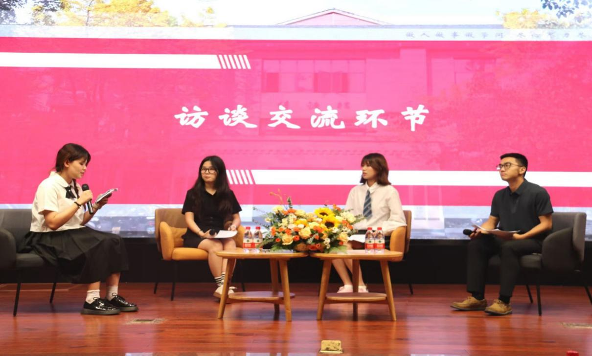 座谈交流环节。三位分享人就同学们提出的为什么要升学、如何稳定心态、如何获得考研学习资料等问题提出了具有针对性的对策。他们认为要保持对马克思主义理论、对思想政治教育的热爱与追求,充分运用学习资源,持续扩展自身知识体系,保持自信,坚定自己选择的道路,才能拥有不断向上钻研的内生动力。