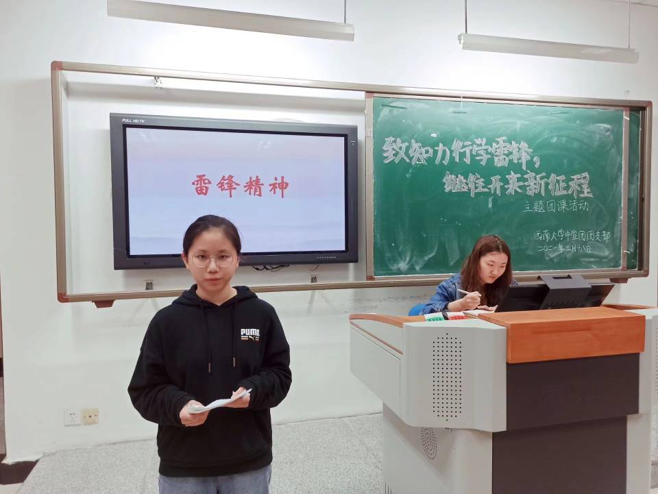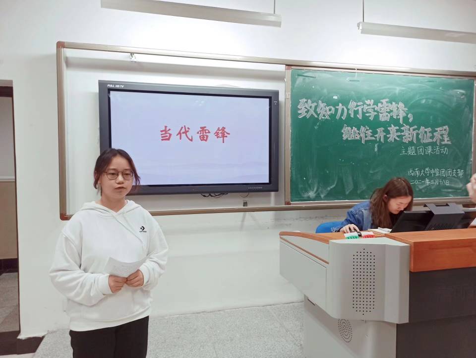 为深入贯彻落实习近平总书记关于传承和弘扬雷锋精神的系列重要论述,领悟雷锋精神的重要内涵,培育和践行社会主义核心价值观,3月18日晚,太阳成集团tyc老员工中国特色社会主义理论体系宣讲团团支部(简称“员工宣讲团团支部”)于太阳成集团tyc研究生教室三举办“致知力行学雷锋,继往开来树新风”“三会两制一课”团课活动。