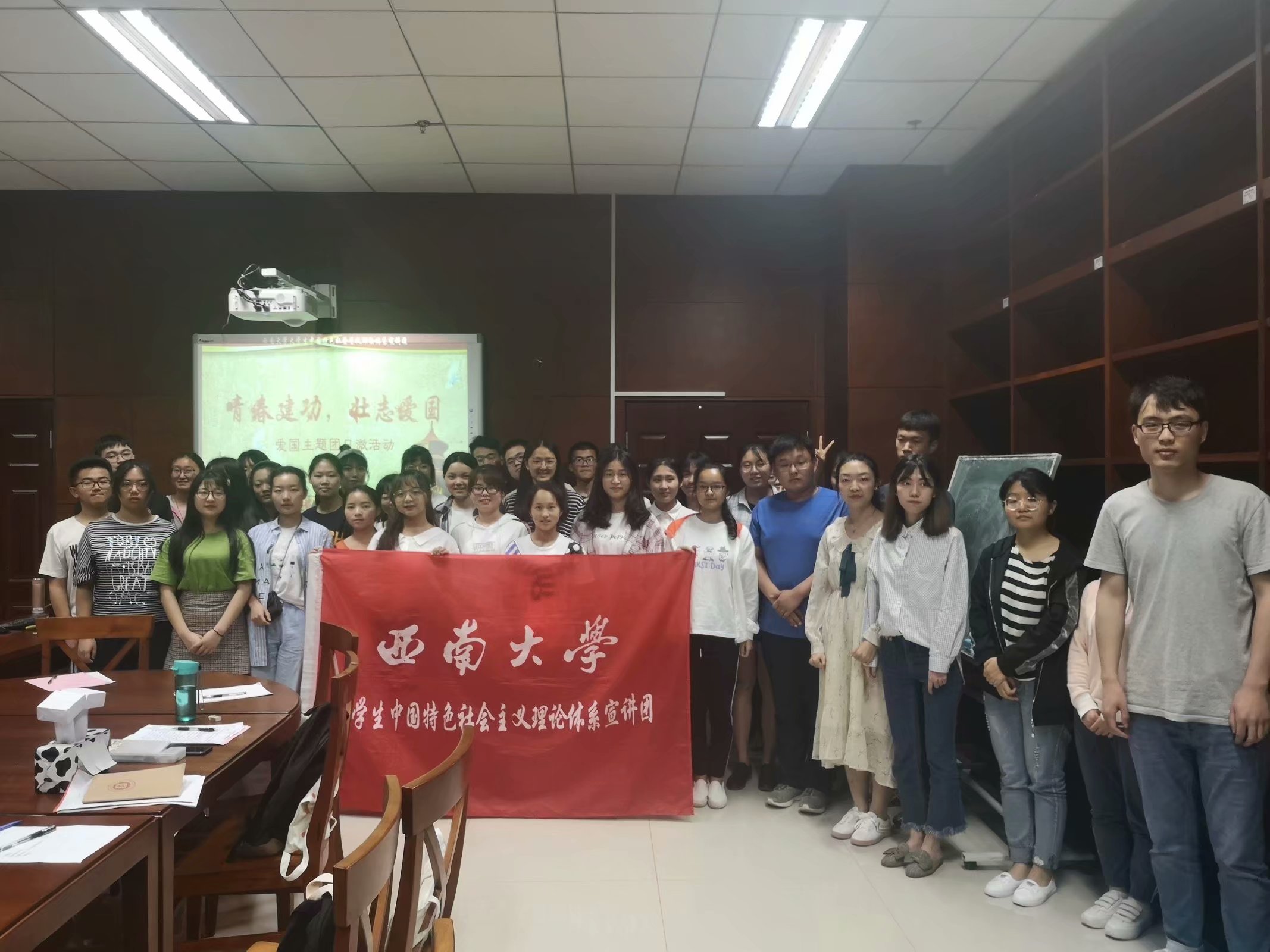 昭昭爱国志,青春正当时。4月21日晚,为进一步弘扬中华民族爱国的优良传统,增强团员的责任感与使命感,太阳成集团tyc老员工中国特色社会主义理论体系宣讲团团支部(以下简称“中宣团团支部”)于中图四楼研修间举办“青春建功,壮志爱国”的主题团日微活动。活动在一首首新时代爱国歌曲的传唱中拉开帷幕。