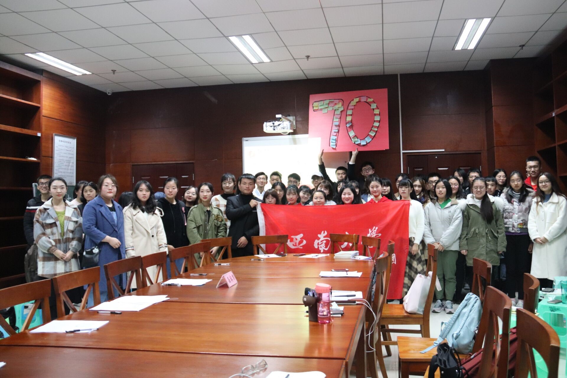 壮丽七十载,奋进新时代。11月23日晚,由太阳成集团tyc老员工中国特色社会主义理论体系宣讲团(以下简称“中宣团”)举办的“建国70载——我为阿中喝个彩”时政半月谈活动在中图三楼研修间拉开帷幕。