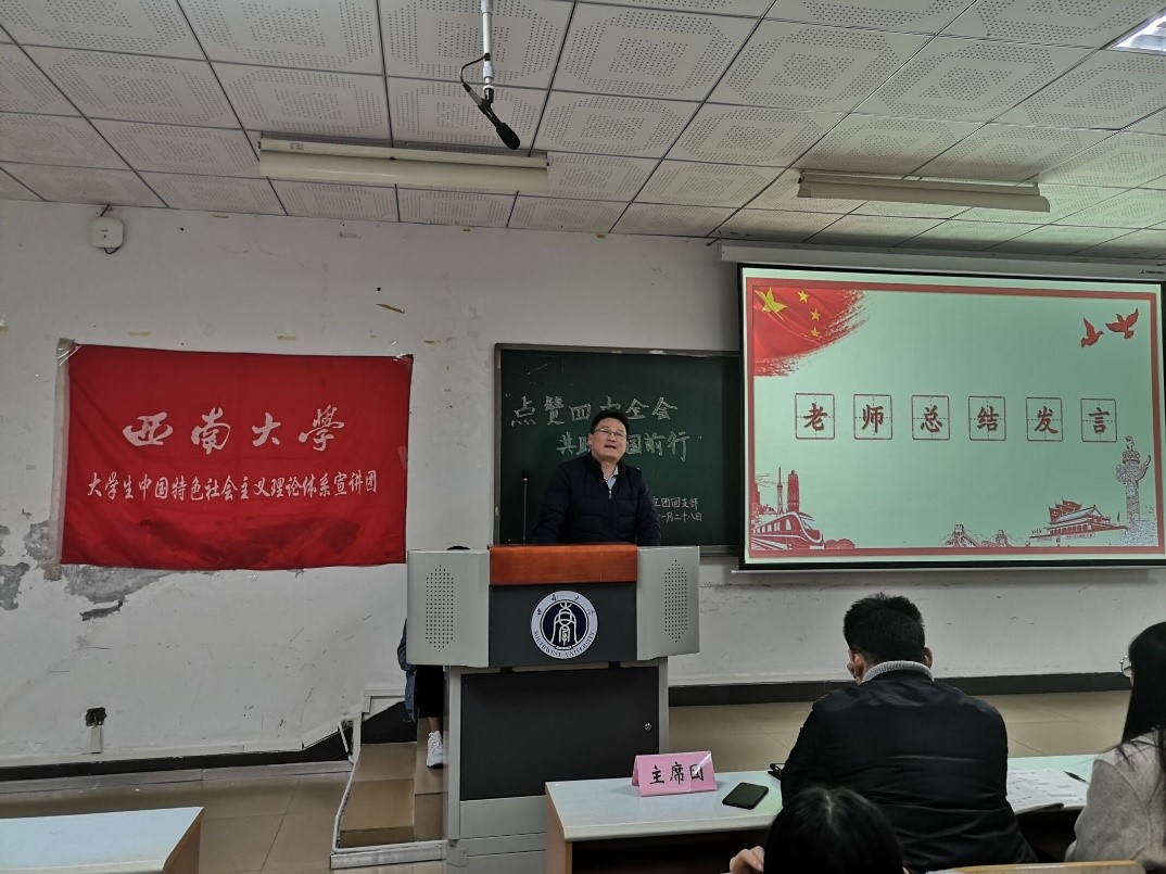 活动最后,张帆老师高度总结和评价了此次团课活动,他强调:本次十九届四中全会团课学习活动是“高大上”的,并具有主题鲜明、理论学习生动、内容丰富、导向意识强、流程规范、参与度高、后期收效好七大特色,对我们意义非凡。这次活动体现出良好的问题导向,提高了团员的思想站位,促使团员们自发地立足于国家社会层面去学习理论知识。同时,他指出:在未来的团课学习中,仍需注意细节讲解,可以由面到点,更深入地挖掘理论背后的思想,树立问题追问意识,更透彻地学习。听了张帆老师的话,团员们受益匪浅。