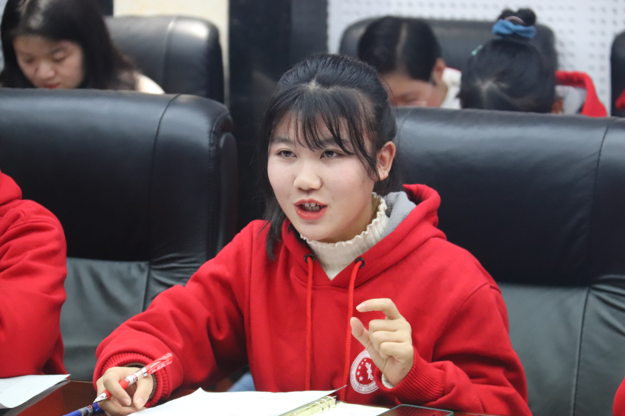 唐老师讲解结束后,师生间展开热烈讨论。研究生研读团团员与员工宣讲团团员积极分享学习心得体会。员工宣讲团团员张颖在交流讨论中说,作为新时代青年首先要做到同史并进,不断加强思想淬炼,时刻保持清醒头脑和坚定立场。其次,新时代青年应践行初心使命,并在实践中磨练自己。最后,新时代青年应担当作为,永无穷期。作为马院学子应该学好理论,传播理论,实践理论。