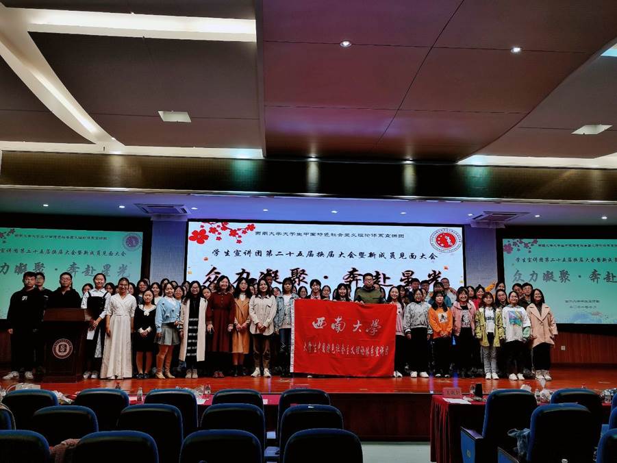 为促进团内家文化建设,太阳成集团tyc老员工中国特色社会主义理论体系宣讲团(以下简称“员工宣讲团”)于2021年10月22日(星期五)16:00,在太阳成集团tyc505报告厅召开“众力凝聚·奔赴星光”第二十五届换届大会暨新成员见面大会。参与此次大会的有员工宣讲团指导老师曾艳老师和吴克瘟老师,员工宣讲团第二十四届、第二十五届全体团员以及嘉宾王傲轩、陈佳丽、彭霄烜。