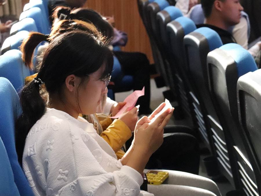 在薪火相传环节,第二十四届全体团员为新团员们准备了写有温馨寄语的折纸,并一同观看了上一届团员制作的祝福视频,拉近了各届小宣人之间的距离,加深了新任小宣人对员工宣讲团的归属感。