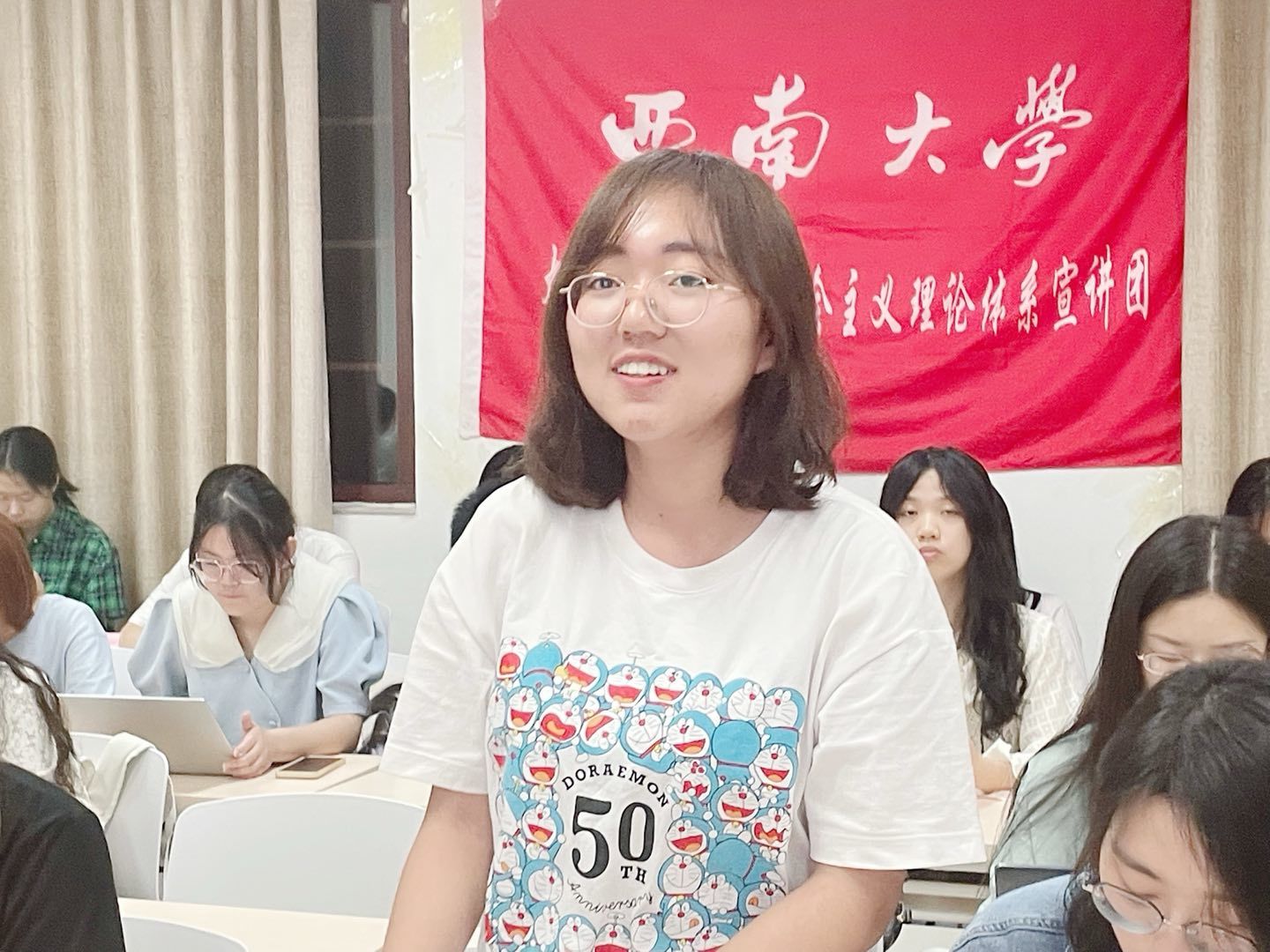 为进一步学习习近平讲话金句,在“学习‘平’语忆英烈”环节,讲解员李思雨带领全团深入学习其中三个金句,带领团员们领会命先烈的理想信念,明确英雄精神的现实意义。