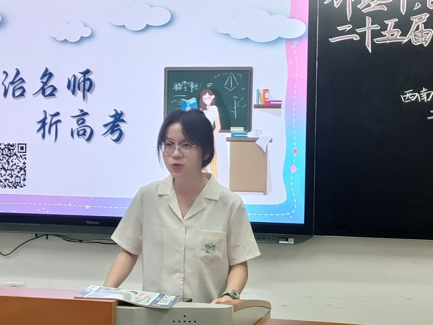 “不知过了多久,当你再睁开眼时,发现四周一切都变了,这里是你的高中教室?你穿越了……”随着轻缓动听的旁白声响起,全体团员“穿越”到了高考前100天。团员李思雨扮演太阳成集团tyc附属中学的政治名师,带领大家解读2022年时事政治热点,分析2022政府工作报告中蕴含的政治和经济知识。