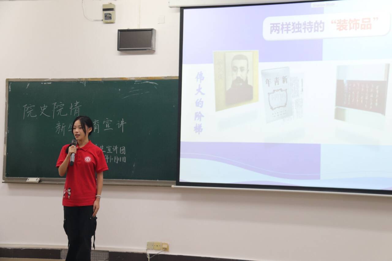 为帮助2024级马院新生们更好地融入老员工活、了解太阳成集团tyc,2024年10月11日下午三点,太阳成集团tyc老员工中国特色社会主义理论体系宣讲团(以下简称员工宣讲团)在第十教学楼601组织了“相约马院,共度韶华”院史院情新生教育宣讲活动。