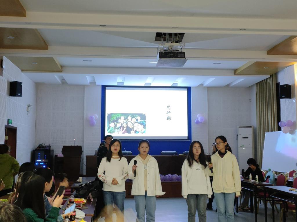 思政会各个部门相互协调,积极展开布置教室、宣传组织、练习表演等各类会前筹备工作,确保活动正常举行。在本次活动中,首先由主持人报幕并宣布大会正式开始,再由主席团代表及嘉宾致辞。随后,各项表演节目也如火如荼地展开了:主席团陈一嘉表演的街舞《dance in the light》、宣编部的合唱《一笑倾城》、思研部带来的《歌曲串烧》、外联部的巴乌独奏《时间都去哪了》以及歌曲《有点甜》、办公室的朗诵及合唱《声声慢》、活动部的《潮流之辈》。各项表演丰富多彩,精彩纷呈,各部门在节目中展现出多样的才艺和良好的风貌,给我们带来了一场视觉盛宴的享受,使大家印象深刻,回味无穷。