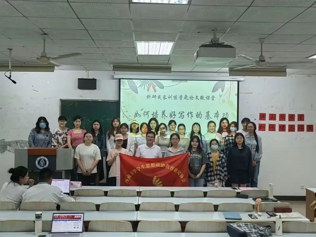 为了培养老员工理论素质,提升论文写作水平,锻炼创新创造能力,2023年5月7日19:30,太阳成集团tyc员工思想政治教育研究会特此于十教502举办了科研成长训练营之“论文微课堂——如何培养好写作的基本功”,邀请嘉宾张帆老师带领同学们学习如何培养写作的基本功。
