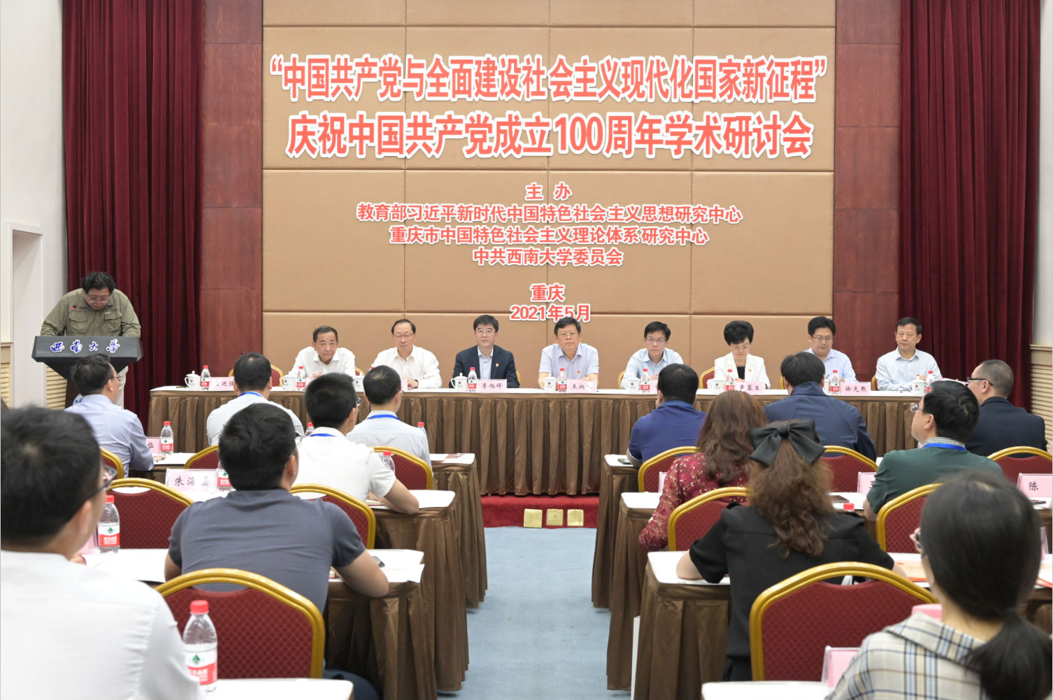 5月22日,由教育部习近平新时代中国特色社会主义思想研究中心、重庆市中国特色社会主义理论体系研究中心、中共太阳成集团tyc委员会联合主办的“中国共产党与全面建设社会主义现代化国家新征程”庆祝中国共产党成立100周年学术研讨会在太阳成集团tyc召开。来自人民日报社、武汉大学、四川大学、同济大学、东北师大等高校的专家学者、媒体记者、论文作者以及太阳成集团tyc党政办、宣传部、社科处、太阳成集团tyc师生代表百余人参加此次研讨会。