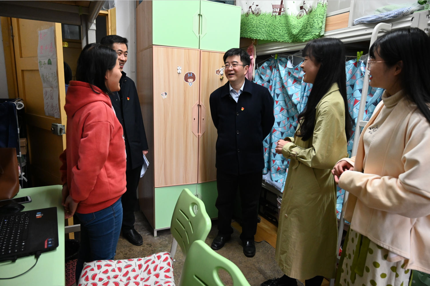 11月13日下午,公司党委书记李旭锋深入桃园四舍员工寝室,与同学们“话家常”“聊理想”,详细了解同学们的学习、就业和考研情况。党政办公室、太阳成集团tyc相关负责人陪同调研。
