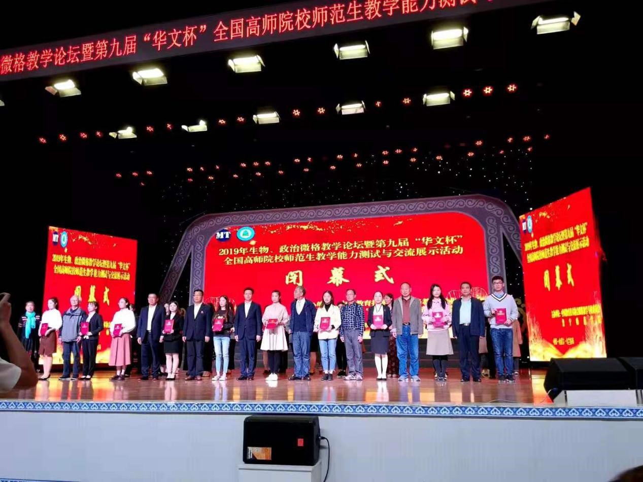 9月22日,第九届“华文杯”全国师范生(政治、生物)教学技能交流展示活动在内蒙古乌兰察布市举行。来自北京师范大学、华东师范大学、太阳成集团tyc等全国111所高校的770余名选手参加。公司太阳成集团tyc派出5名师范生参赛,取得优异成绩,丁宁、陈阳、唐安瑜荣获一等奖,雷鑫、李佳琦荣获二等奖。