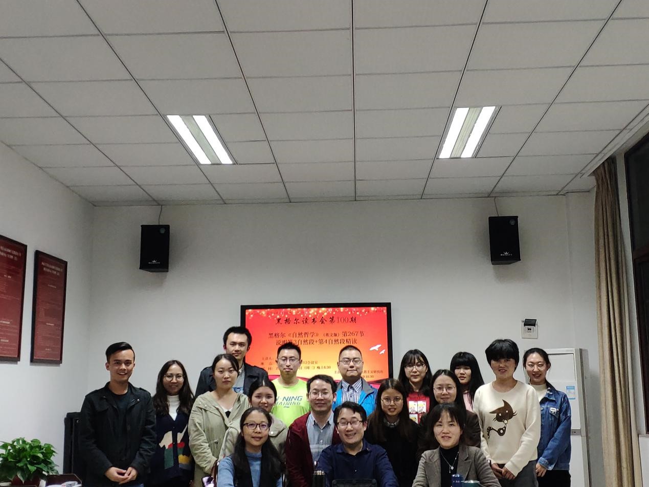 黑格尔读书会的各位师生,深受潘书记讲话的鼓舞,纷纷表示今后要更加努力地品味经典,把在黑格尔读书会中学到的理论知识、读书方法、思维方法和研究方式应用到各自的研究领域之中,做合格的马克思主义理论的研究者和传播者,为祖国的意识形态和文化软实力建设尽自己的绵薄之力。在完成各项预定议程之后,黑格尔读书会的成员合影留念,以纪念这个值得庆贺的日子,大家期待着新的一百期的开启。