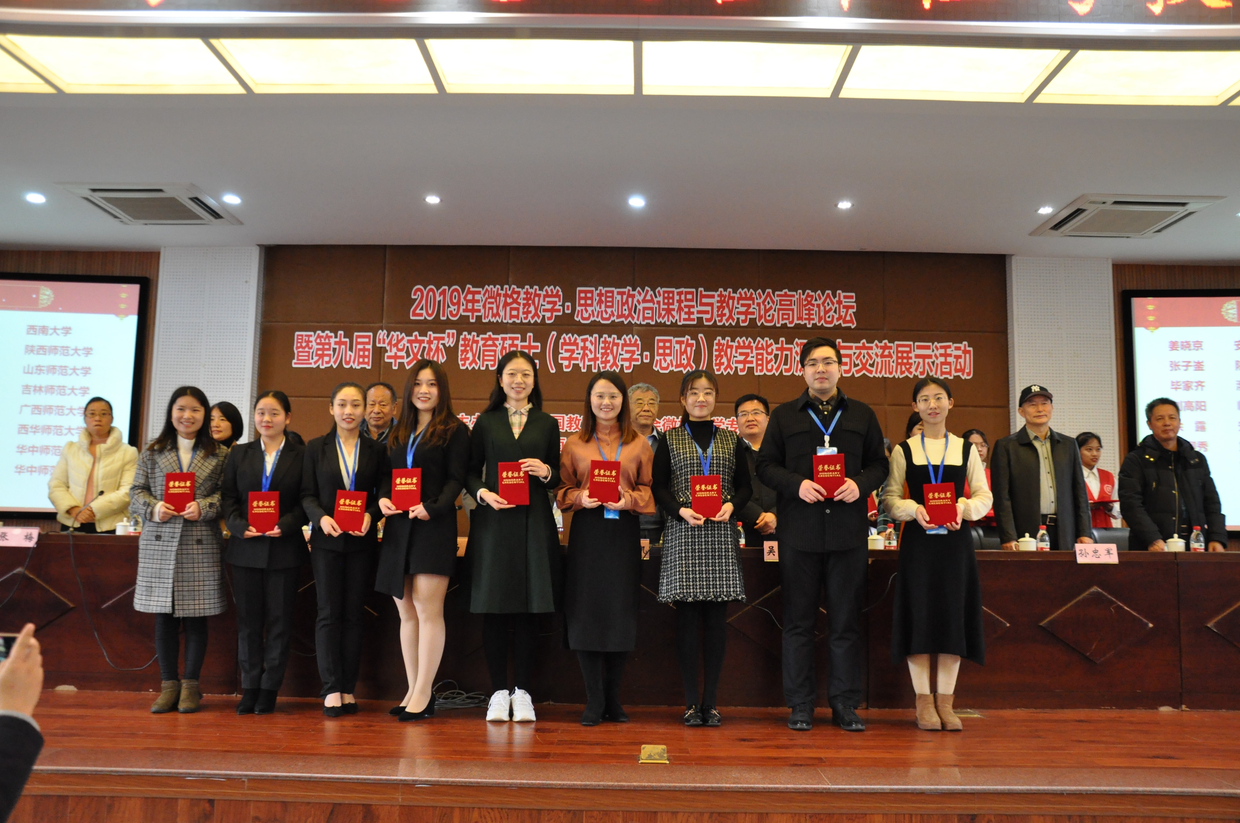 随后,“2019年微格教学·思想政治课程与教学论高峰论坛暨第九届‘华文杯’教育硕士(学科教学·思政)教学能力测试与交流展示活动”在太阳成集团tyc505报告厅落下帷幕。此次论坛举办过程中,来自全国四十余所高校的二百余名师生行万里路、取四方真经,百舸争流、博采众长,充分展现了教育硕士(学科教学·思政)扎实过硬的专业素养、热情昂扬的精神风貌以及指导教师团队的合作和奉献精神,是教育硕士(学科教学·思政)人才培养工作结出的又一硕果。