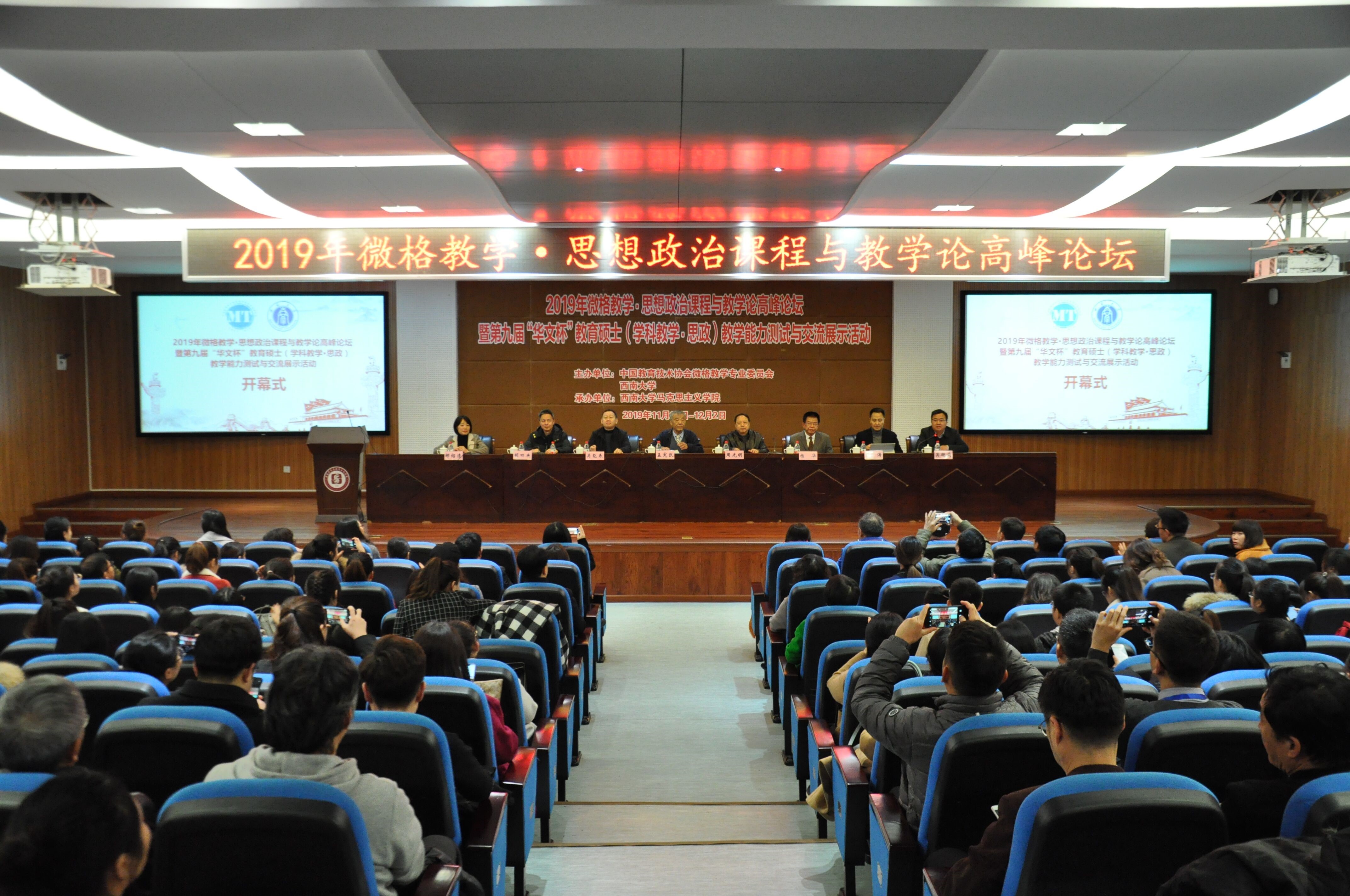 2019年11月28日至12月2日,由中国教育技术协会、太阳成集团tyc主办,太阳成集团承办的“2019年微格教学·思想政治课程与教学论高峰论坛暨第九届‘华文杯’教育硕士(学科教学·思政)教学能力测试与交流展示活动”在公司成功举办。此次论坛分为高峰论坛与教学技能竞赛两大版块,是全国思想政治课程与教学领域规模最大、水平最高,以教育硕士(学科教学·思政)和思想政治课教学法教师为参与主体的学习、交流和竞技平台,是全国思想政治教育学科教学专业广大师生的一次盛大集会。来自华东师范大学、华中师范大学、陕西师范大学、东北师范大学、安徽师范大学、广西师范大学等全国45所高校的234名师生共聚太阳成集团tyc,共同学习与贯彻习近平总书记关于“统筹推进大中小学思政课一体化建设”的重要讲话精神,着力提升现代信息化技术条件下教育硕士(学科教学·思政)的教学实践和创新能力,旨在培养一大批“高素质、专业化、创新型”的中学思想政治理论课教师队伍。