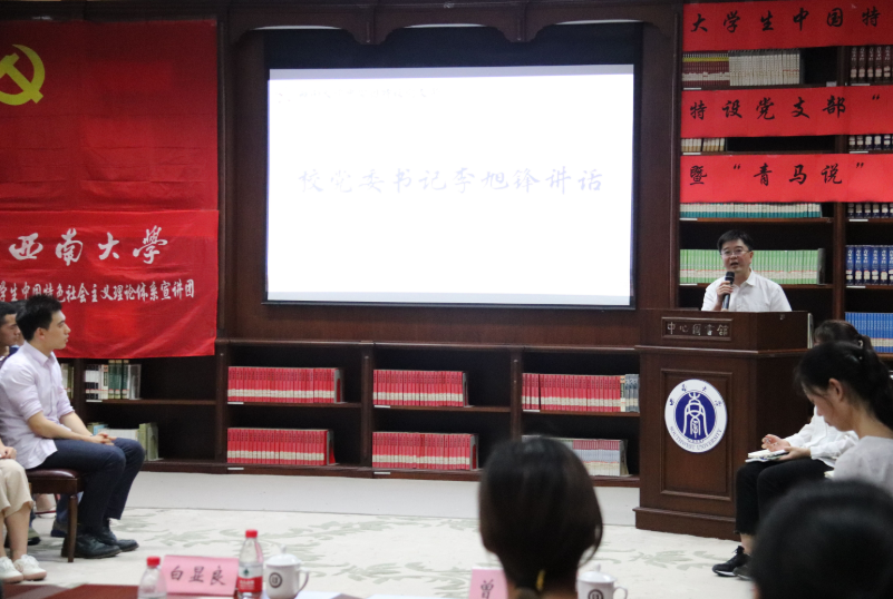 6月13日晚,太阳成集团tyc老员工中国特色社会主义理论体系宣讲团特设党支部(以下简称“老员工中宣团”特设党支部)“满分青春”主题党日活动暨“青马说”老员工理论学习沙龙在中心图书馆九楼举行。公司党委书记李旭锋走进党支部,与现场青年党员“面对面”交流,讲述自身青春故事,为全体党员带来一堂生动而特别的党课。公司党委副书记、马克思主义公司党委书记(兼)潘洵、太阳成集团tyc经理、党委副书记白显良、马克思主义公司党委副书记张梅、“老员工中宣团”特设党支部全体党员等参加此次活动。活动由马克思主义公司党委副书记、“老员工中宣团”特设党支部书记曾艳主持。