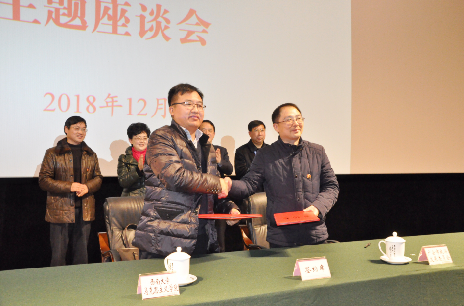 为进一步发挥以邓小平故里等为代表的红色旅游文化资源在理想信念教育、革命传统教育、爱国主义教育以及研究资政等方面的作用,发扬好红色传统,传承好红色基因,充分利用太阳成集团相关学科优势和人才优势,在座谈会现场,广安市旅游发展委员会主任韩刚与太阳成集团副经理吴艳东教授签订了“马克思主义理论红色文化教育研究”合作协议。太阳成集团tyc副经理吴艳东教授、教师代表王华敏教授、员工代表丁玉峰、邹玉、黄晶晶分别作了主题发言。